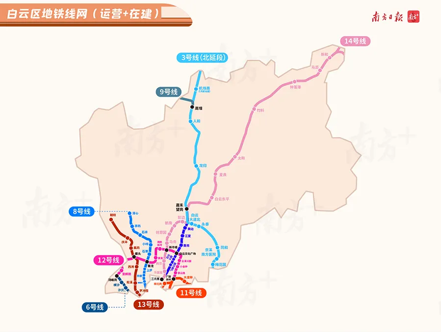在此基础上,“十四五”期间,白云区地铁将再迎来爆发式增长。未来区内规划轨道线路将达到326公里,线网密度将达到1公里/平方公里,实现24个镇街和八大产业园区轨道交通全覆盖。地铁十一号线、十二号线、十三号线二期、十四号线二期项目,预计在“十四五”期间建成开通。