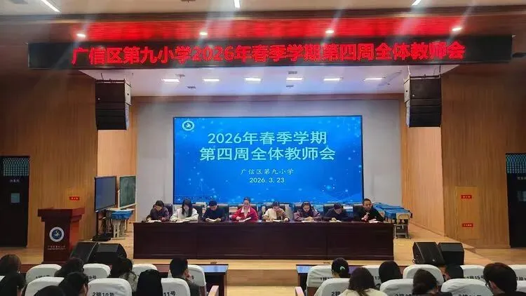 广信区第九小学于3月23日中午召开全体教师会。会议总结回顾了近期工作,并对下一阶段教学管理、德育活动及校园安全等事项进行了细致安排,确保各项工作稳步推进、落实到位。