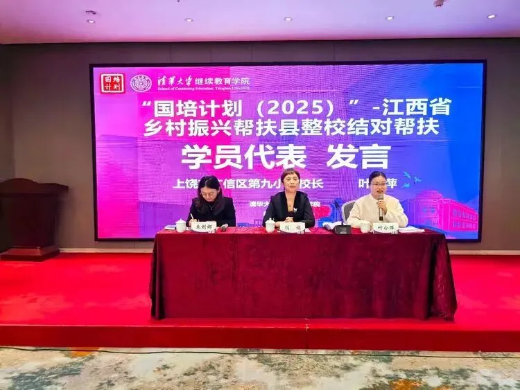 近日,广信区第九小学参加了“国培计划(2025)”—江西省乡村振兴帮扶县整校结对帮扶项目。学校校长叶小萍作为学员代表在活动中发言。本次活动聚焦教育帮扶与乡村教育发展,旨在助力提升学校办学质量与教师专业素养。
