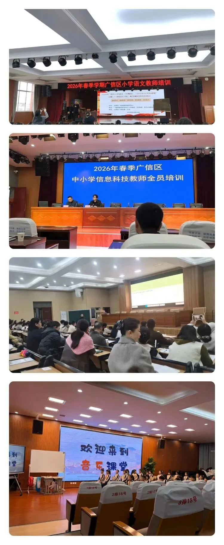 近日,广信区第九小学组织语文、音乐、科学、美术、信息技术等学科教师参加了全区统一培训。本次培训涵盖多学科教学能力提升内容,旨在帮助教师更新教育理念、拓宽教学视野,进一步提升专业素养和课堂教学水平,为学校教育教学质量的全面提升夯实基础。