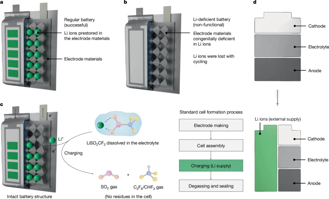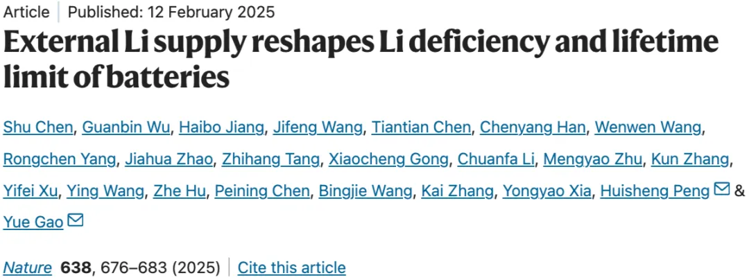 文献详情:Chen, S., Wu, G., Jiang, H. et al. External Li supply reshapes Li deficiency and lifetime limit of batteries. Nature 2025, 638, 676–683.