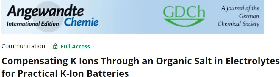 文献详情:Wang, W., Wu, G., Chen, S., et al. Compensating K Ions Through an Organic Salt in Electrolytes for Practical K-Ion Batteries. Angew. Chem. Int. Ed. 2025, 64, e202424516