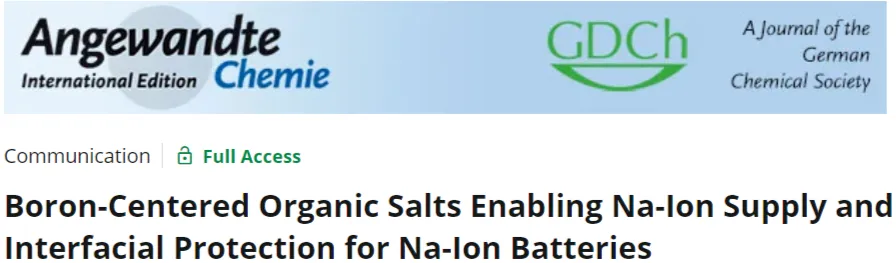 文献详情:Zheng, Z., Chen, S., Wu, G., et al. Boron-centered Organic Salts Enabling Na-Ion supply and Interfacial Protection for Na-Ion Supply. Angew. Chem. Int. Ed. 2025, e202517997