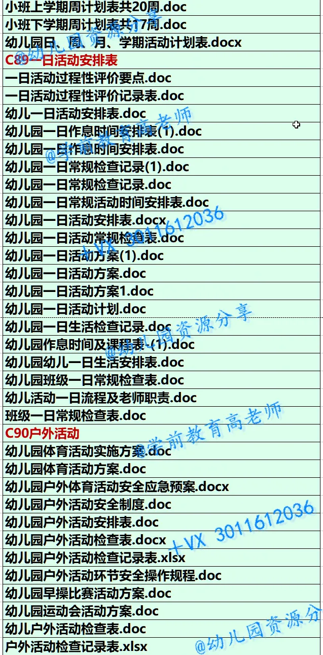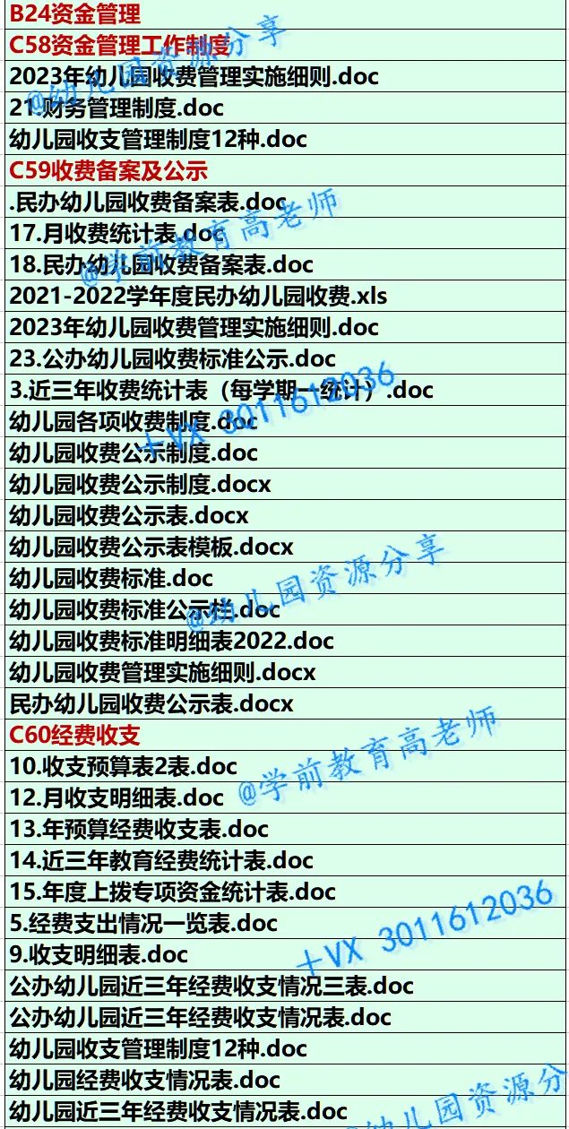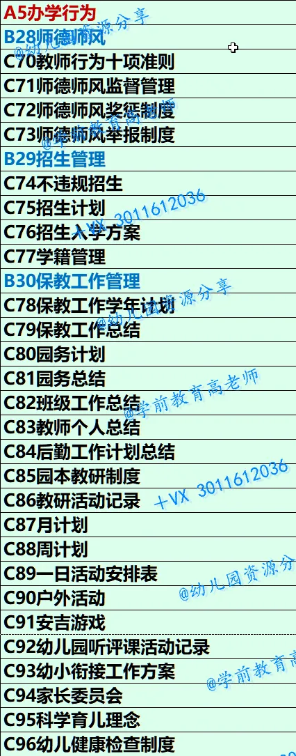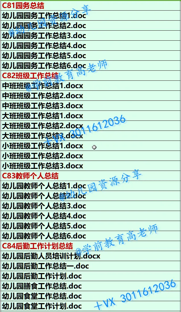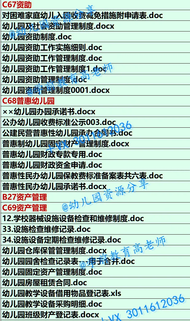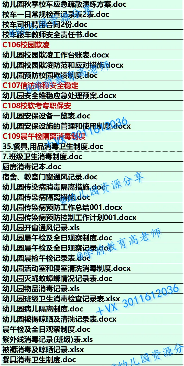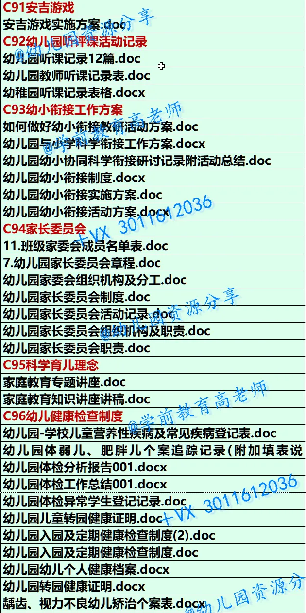 本套资料根据幼儿园年检细则整理而成,分A1党的建设—A2办园条件—A3依法治园—A4财务资产管理—A5办学行为—A6教师权益—A7日常管理—A8奖励加分 八大板块共863个文档,170个文件夹,很全面的一套资料!欢迎试看,咨询!对幼儿园年检具有很强的参考和学习价值。@+VX 3011612036