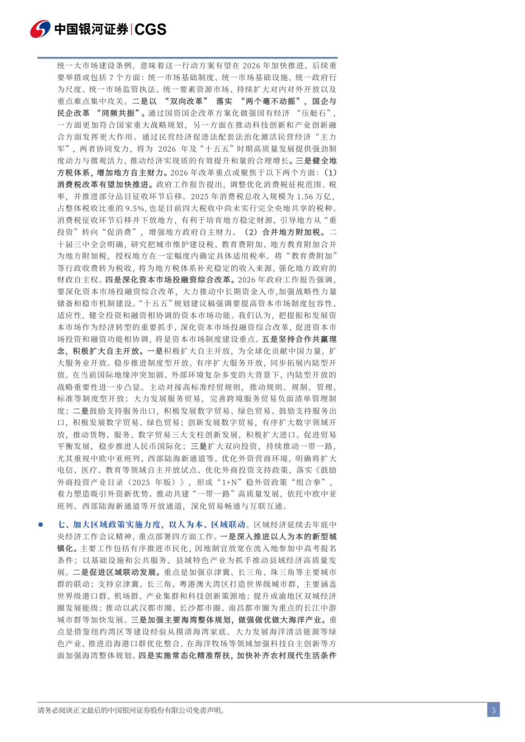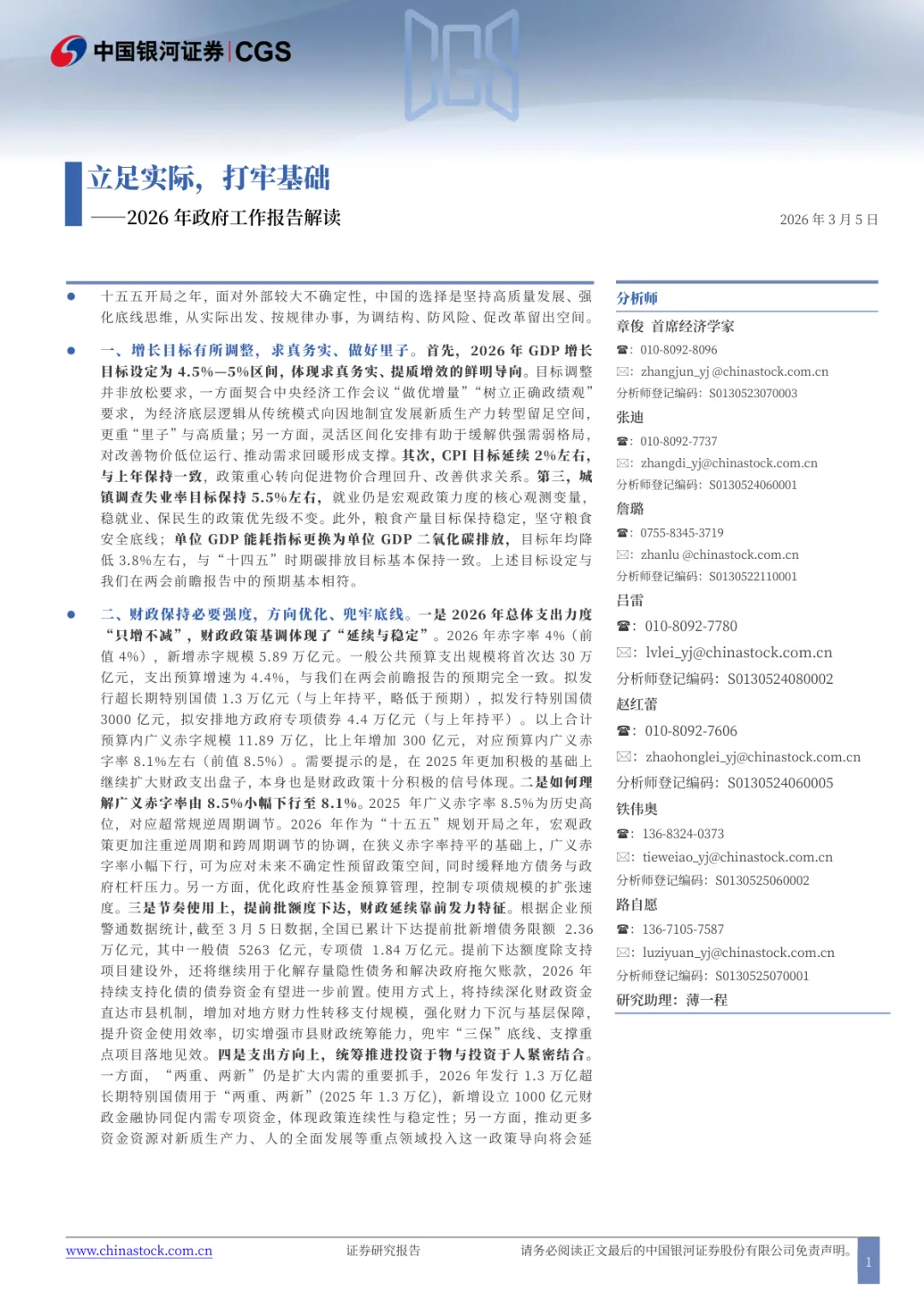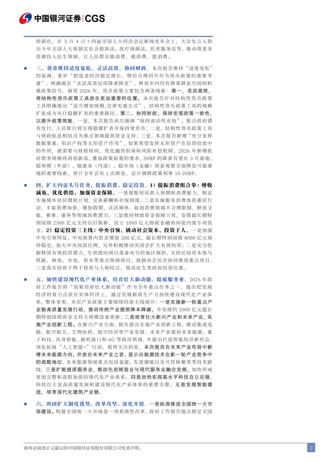 2026年政府工作报告解读:立足实际,打牢基础:由中国银河证券2026年3月5日发布,共42页。报告紧扣“十五五”开局之年背景,围绕增长目标、财政、货币、内需、产业、改革、区域、民生、风险化解、“十五五”规划十大核心方向,全面解读政策导向,明确2026年经济以高质量发展为核心,坚持底线思维、务实调结构,为市场研判与政策落地提供专业参考。