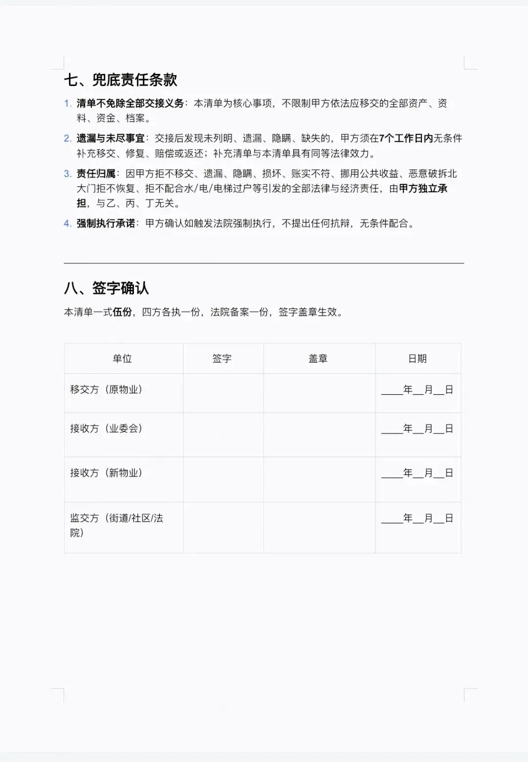 业委会已制作《物业交接清单》,恳请法院督促被执行人按清单全面移交。