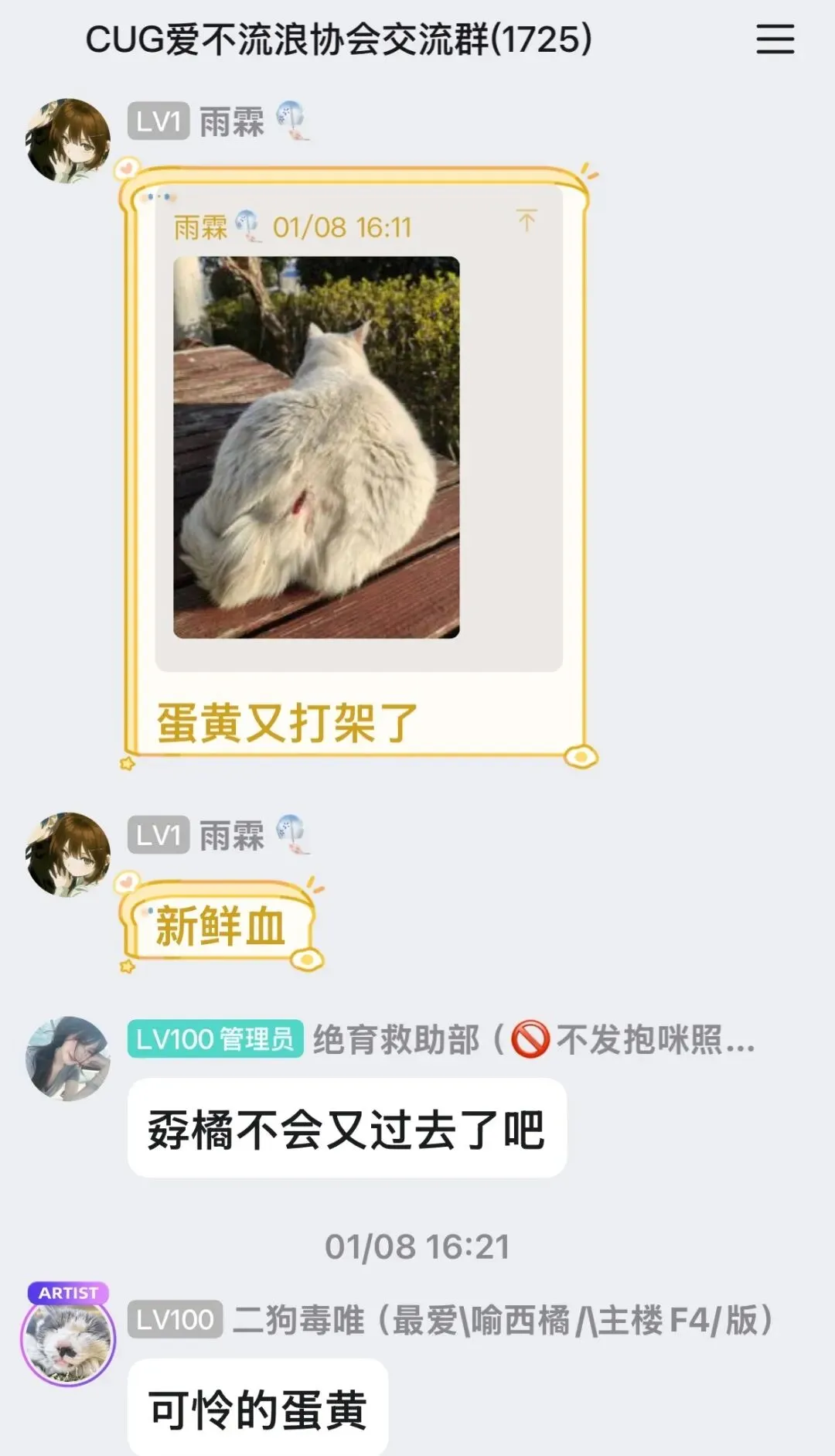 花姐自从肥波失踪后,就在弘毅堂一直过着形单影只的日子,这样的日子也没有安稳几天,就被假夹子赶到了63栋,在63栋生活的它也常常是提心吊胆,不是防着假夹子又会去驱赶它,就是防着58栋的龅牙扁脸莎跑去欺负它,但众多两脚兽对它的喜爱让它夹缝中求生的日子也没那么凄惨,短短的身子圆乎乎的。