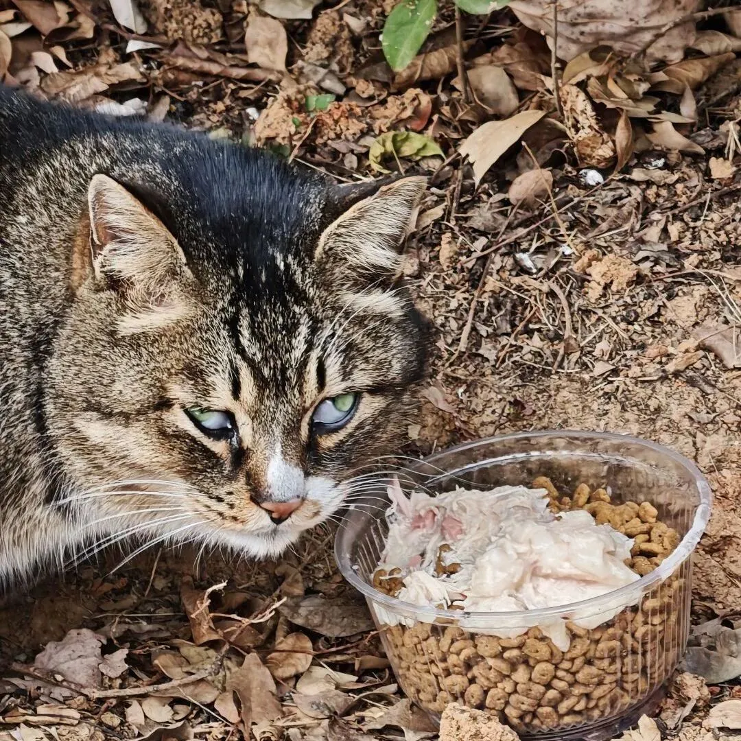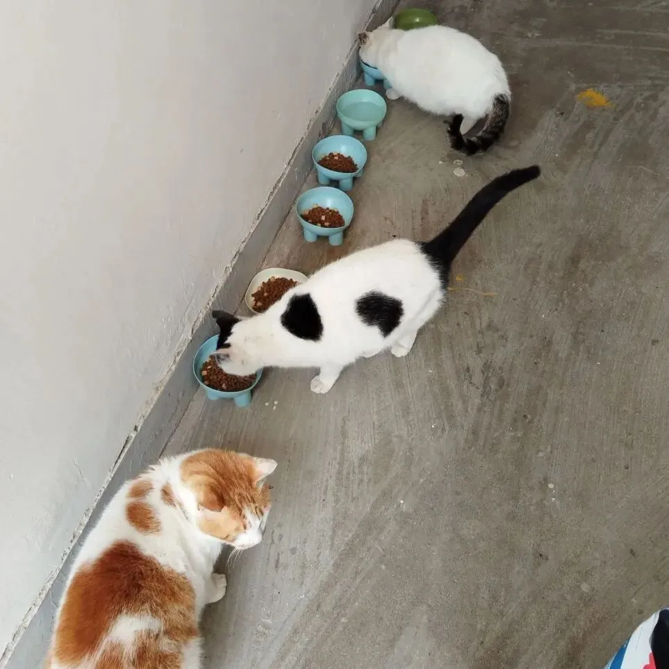 去年下学期,63栋前面的两栋宿舍楼全部拆除重建,花姐所在的地方即将成为工地,她面临着无处可待的处境,夹子爹在决定带走夹子后,大家觉得等夹子走后,让它重返弘毅堂是个不错的选择。杨老师抓住了花姐,给它找了寄养家庭过度一下,待夹子走后再找合适的机会放归到弘毅堂。