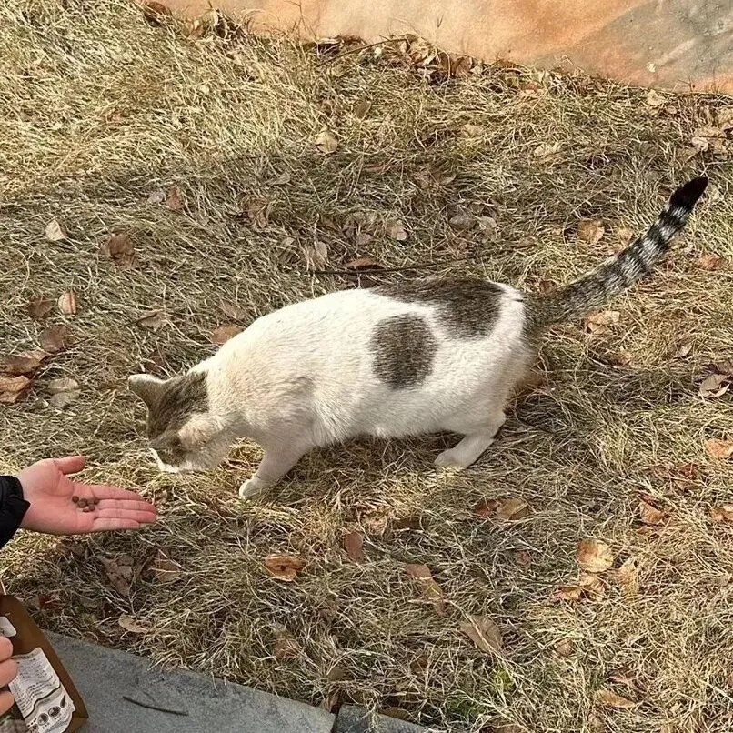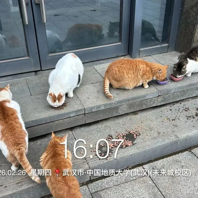 它来历不明,只知道它突然出现的那两天,大家在学校西、北、东区都见到过它奔跑的身影,但在西区和北区它都只做了短暂的停留,最终,它坚定地选择定居在研二栋楼下,找了豆包当家长,找了研二的姐姐们当靠山,过上了快乐且满足的生活,因为它性格好,颜值也还不错,同学们曾经带去线下找领养,但它全程昏睡,最终又带回学校。也曾有个博士生领养它,但它刚到别人家那种太放松太热情的态度遭到原住民的强烈不满甚至有些抑郁,第二天就被送回,正当我们都为它的命运感到唏嘘之时,谁知道寒假放假前,一位住研二武汉本地的小姐姐放假准备回家时,它跑到别人腿上不下来,好在小姐姐家里本来也就养了一只猫,看到赖在腿上不下来、可怜兮兮看着她的小豆,实在是不忍心赶它,就决定带回家了。