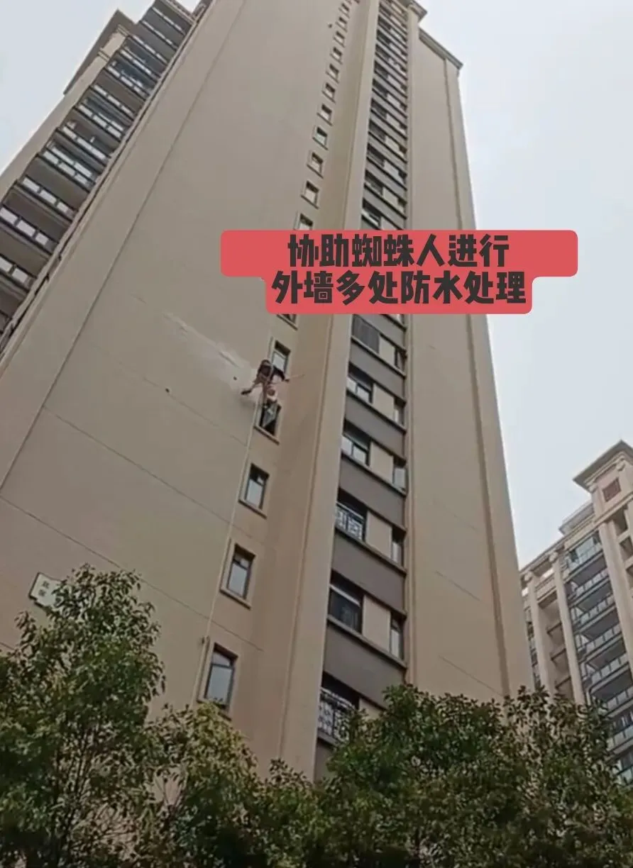 7、配合蜘蛛人进行多栋外墙防水处理。