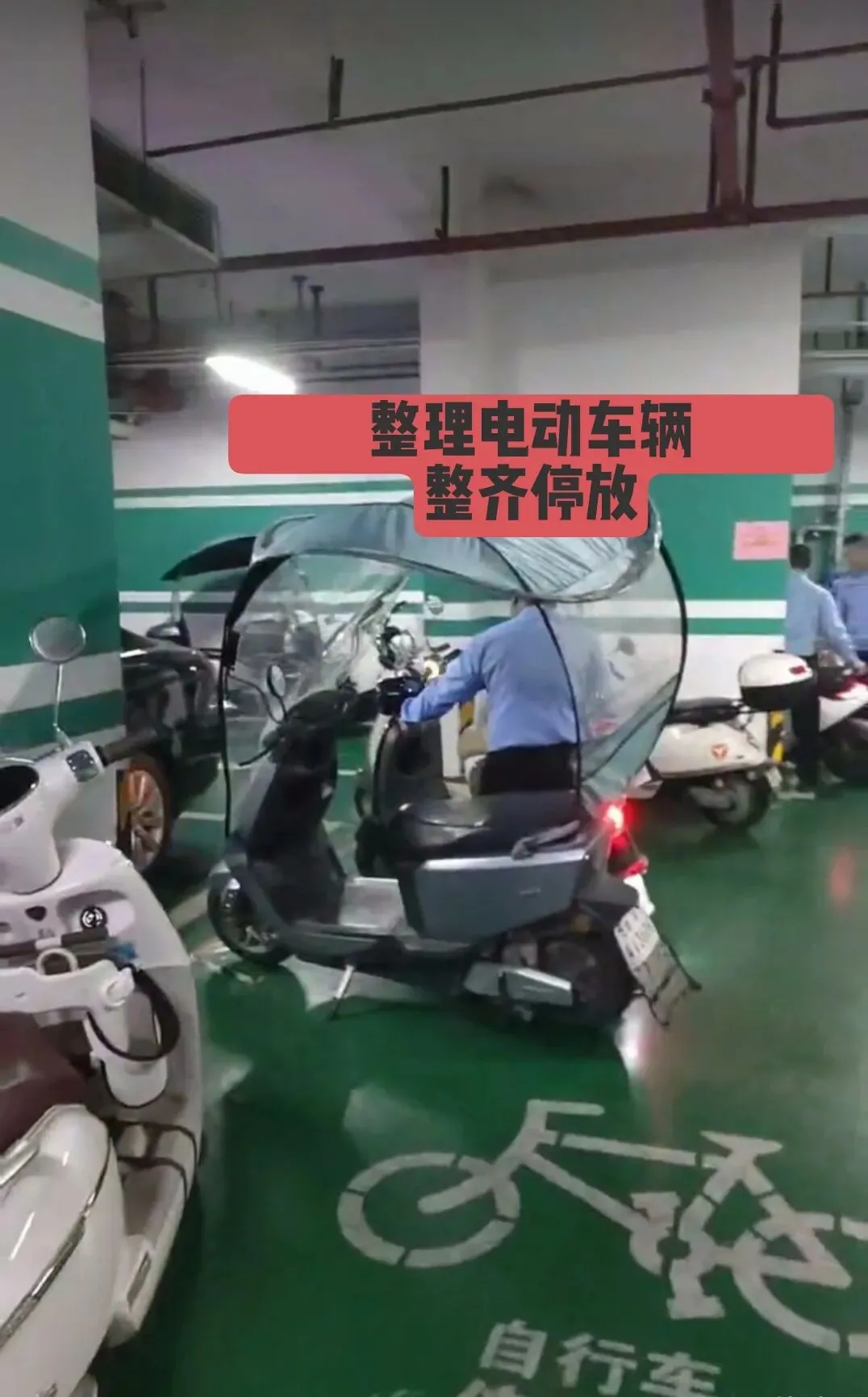 3、对园区乱停乱放的非机动车辆规整摆放;