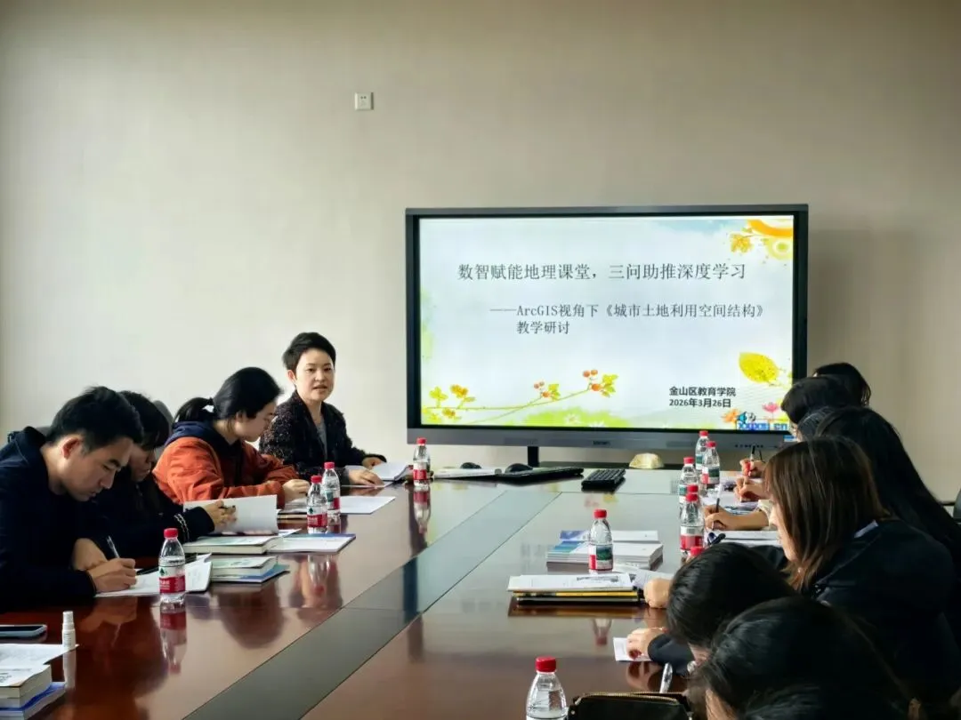 2026年3月26日下午,赵彩霞名师工作室三年建设工作总结报告会在华东师范大学第三附属中学顺利开展。此次活动以“数智赋能地理课堂,三问助推深度学习”为主题,旨在推进双新背景下高中地理课堂教学实践的变革。金山区高中地理教研员杨欢欢、地理名师工作室主持人赵彩霞以及工作室全体成员、金山区部分高中地理教师参与本次活动。