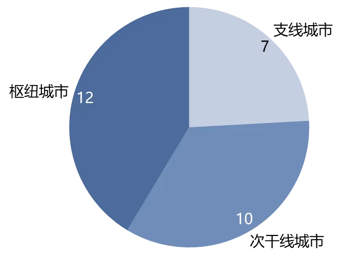 本报告立足城市发展视角,将运输机场所在城市分为枢纽城市、次干线城市以及支线城市三类,具体定义如下: