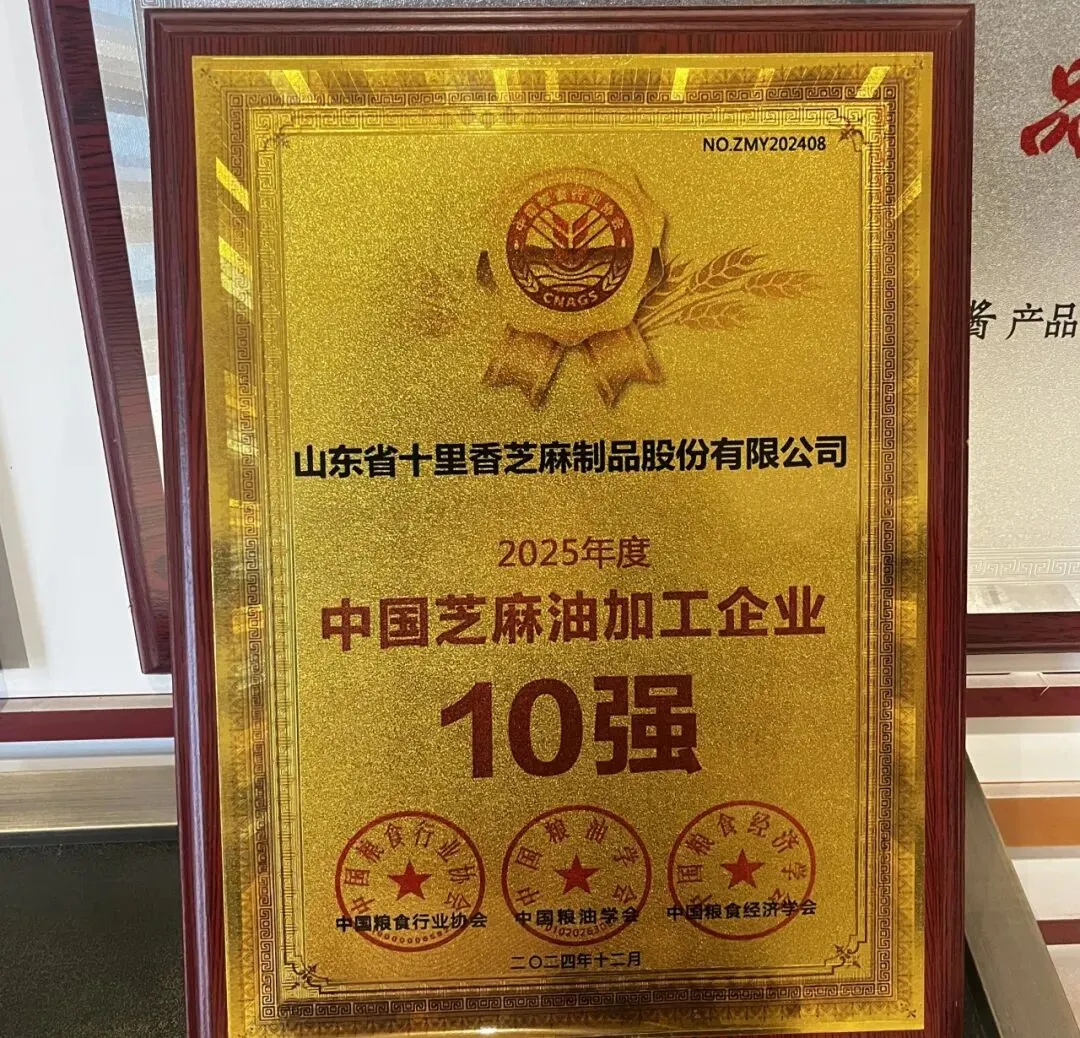 十里香芝麻制品股份有限公司成功跻身国家级信用体系,荣登中国粮油榜,鲁誉牌小磨芝麻香油(山东特色优质产品)被山东省工业和信息化厅发文推广,品牌影响力持续扩大;