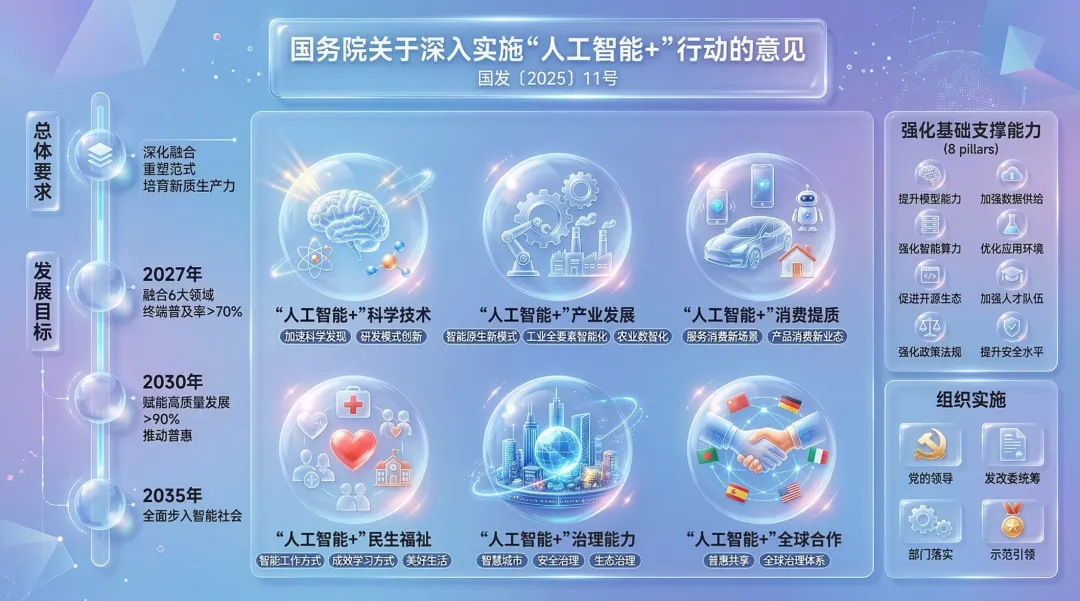 国务院印发《关于深入实施“人工智能+”行动的意见》:一图读懂“6+8”行动路线图与未来机遇