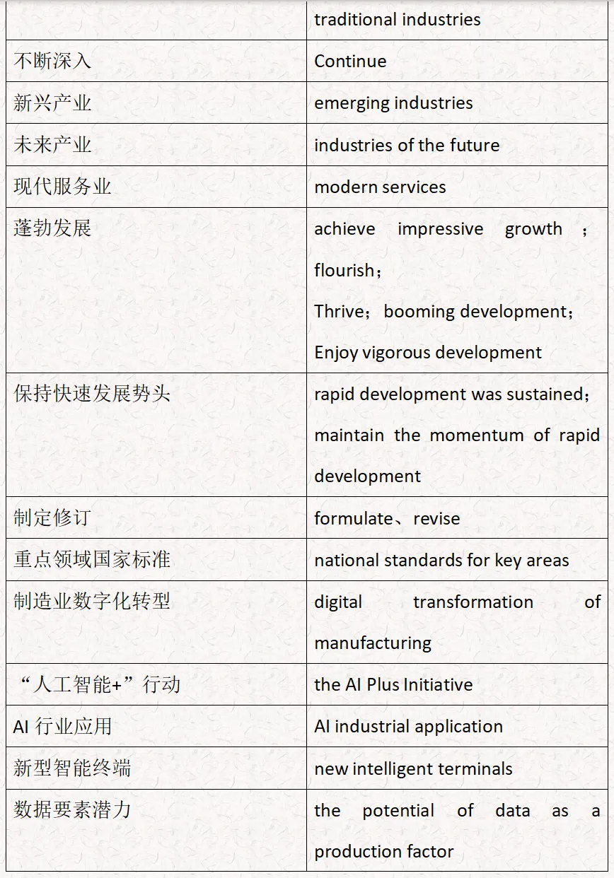 二是坚持创新驱动发展,建设现代化产业体系。全面推进科技强国建设战略部署,强化国家战略科技力量建设,完善区域科技创新体系,加强基础前沿领域体系化布局和关键核心技术攻关。全社会研发经费投入强度达到2.8%,技术合同成交额增长10.8%。科技创新和产业创新融合加快,传统产业转型升级不断深入,新兴产业、未来产业蓬勃发展,现代服务业保持快速发展势头。聚焦重点领域制定修订583项国家标准。持续推进制造业数字化转型和“人工智能+”行动,行业应用加快落地,新型智能终端不断涌现。数据要素潜力加快释放,数字经济核心产业增加值占国内生产总值的比重提高到10.5%以上。2. We pursued innovation-driven development and continued to build a modernized industrial system. We implemented strategic plans for comprehensively building China's strength in science and technology. This included boosting strategic science and technology capabilities, improving regional technological innovation systems, reinforcing systematic planning for basic and frontier areas, and making breakthroughs in core technologies in key fields. Last year, China's R&D spending reached 2.8 percent of GDP, and the value of technology contract transactions rose by 10.8 percent. The integration of technological and industrial innovation picked up pace; transformation and upgrading of traditional industries continued; emerging industries and industries of the future achieved impressive growth; and rapid development was sustained in modern services. A total of 583 national standards for key areas were formulated or revised. We moved ahead with digital transformation of manufacturing and the AI Plus Initiative. AI industrial application gathered pace, and new intelligent terminals emerged continuously. The potential of data as a production factor was unlocked more quickly, and the value added of core digital economy industries exceeded 10.5 percent of GDP. 三是进一步深化改革开放,畅通国民经济循环。扎实落实党的二十届三中全会改革部署。实施全国统一大市场建设指引,出台新版市场准入负面清单,系统整治招标投标、招商引资领域突出问题,推进重点行业产能治理,综合整治“内卷式”竞争成效显现。开展要素市场化配置综合改革试点。国有企业改革深化提升行动取得积极成效,出台进一步促进民间投资发展的措施。加快加力清理拖欠企业账款。有序推进自主开放、单边开放,稳步扩大单方面免签或全面互免签证。加大稳外贸力度,进出口量稳质升,出口增长6.1%。出台稳外资行动方案,新设外资企业数量增长19.1%。实施自由贸易试验区提升战略,海南自由贸易港启动全岛封关运作。扎实推进高质量共建“一带一路”,各领域务实合作水平不断提升。3. We further deepened reform and opening up and ensured smooth flows in the national economy. We took solid steps to implement the reform plans adopted at the third plenary session of the 20th CPC Central Committee. We implemented the guidelines on developing a unified national market, issued an updated negative list for market access, and systematically addressed prominent problems in the areas of public bidding and investment attraction. We pushed ahead with production capacity regulation in key industries and achieved notable progress in addressing rat race competition through holistic measures. Comprehensive reform trials were carried out to promote market-based allocation of production factors. Initiatives to deepen and upgrade the reform of state-owned enterprises (SOEs) yielded positive results, and we rolled out measures to further boost private investment. We worked faster and redoubled efforts to see that overdue payments owed to enterprises were settled. We took the initiative to open China wider and advanced unilateral opening up in a well-ordered way, steadily expanding both unilateral visa-free entry policies and comprehensive mutual visa exemptions. Greater efforts were made to maintain stable performance of foreign trade, ensuring both stable volume and higher quality. Exports for the year grew by 6.1 percent. Thanks to a new initiative launched to keep foreign investment stable, we saw a 19.1-percent increase in the number of newly-established foreign-funded enterprises. The strategy to upgrade pilot free trade zones was implemented, and island-wide special customs operations were launched in the Hainan Free Trade Port. Solid steps were taken to advance high-quality Belt and Road cooperation, further boosting practical cooperation in various fields.END……