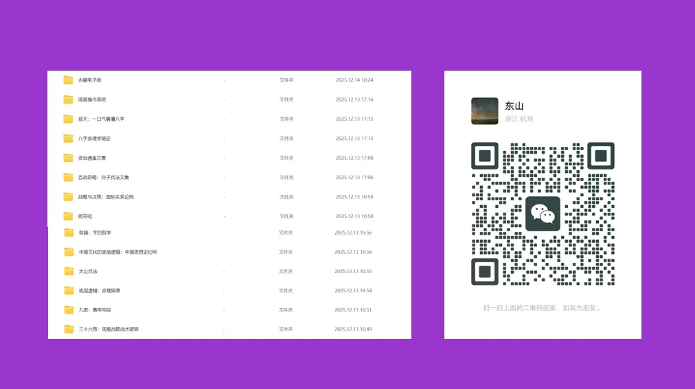 PS:周易第一季代表性的文章已经整理完成,感兴趣的朋友可以咨询东山,32元一份。我们也建立了一个周易的读书群,里面包含过往的全部文章,学费是800元一年。欢迎大家入群围观,讨论。入群暗号:金生水。