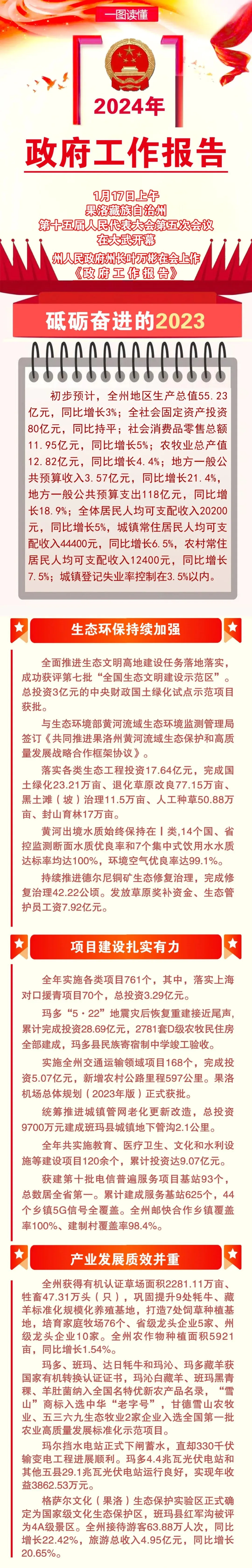 1月17日上午,果洛藏族自治州第十五届人民代表大会第五次会议在大武开幕。州人民政府州长叶万彬作政府工作报告。