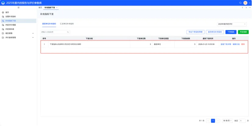 六、下发后,系统提示下发成功,并自动记录一条数据形成一个下发分组。以上是主管部门进行补充指标设置及下发的过程,补充指标可以设置哪些?辣辣给小伙伴们做了梳理,在内控佐证附件材料里有。填报需要上传哪些佐证材料,辣辣也给大家做了整理⬇️内控佐证附件清单:⬇️