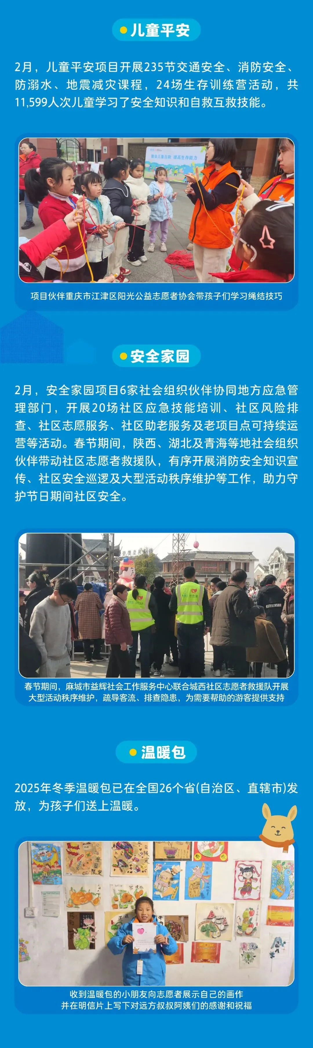 以“尽我所能、人人公益”为愿景,专注于灾害救助、儿童关怀与发展、公益支持与创新三大领域,是5A级社会组织,连续十四年保持信息公开透明度满分。