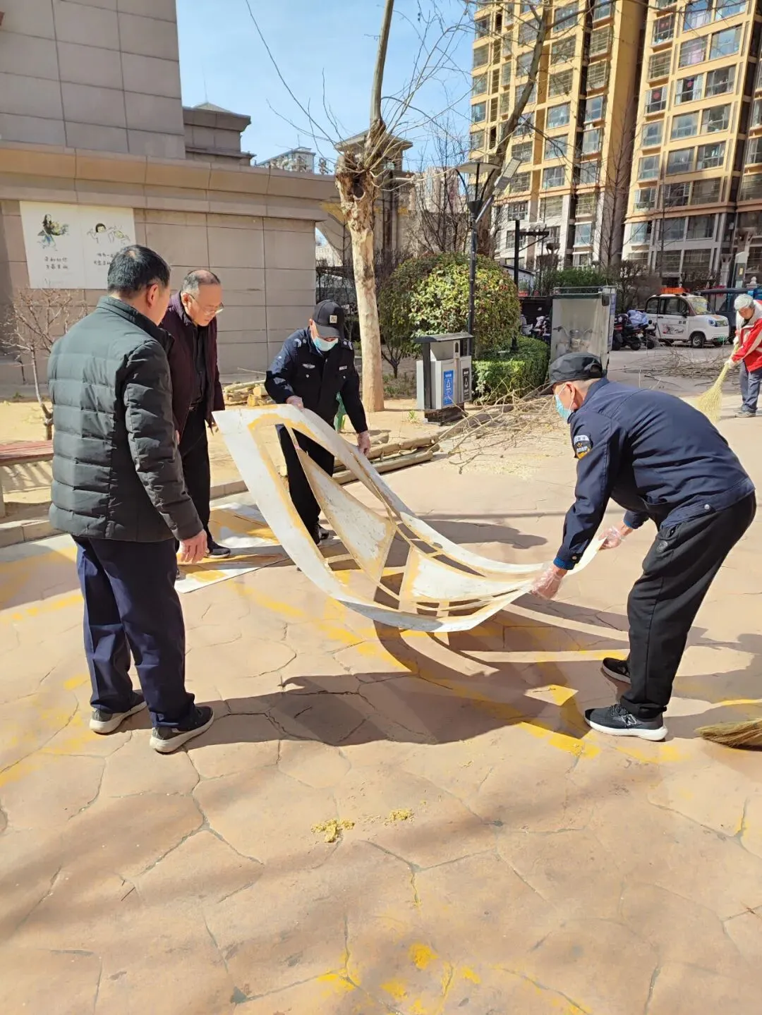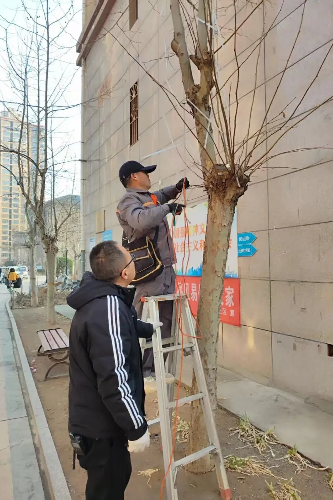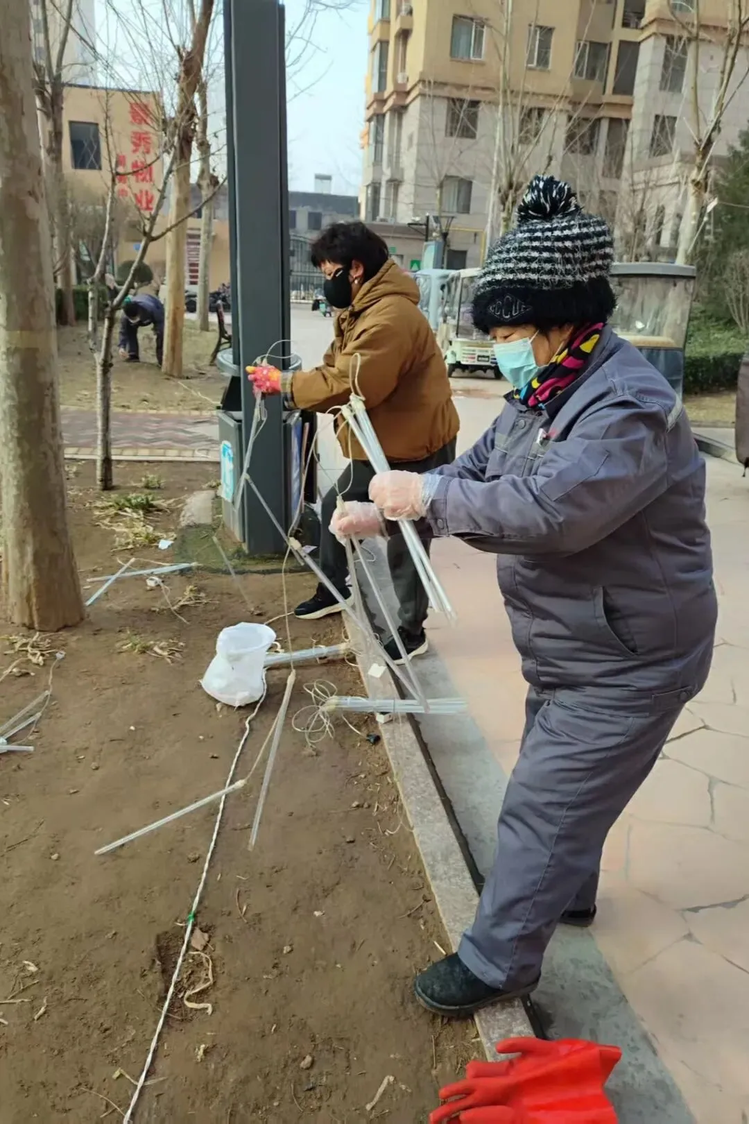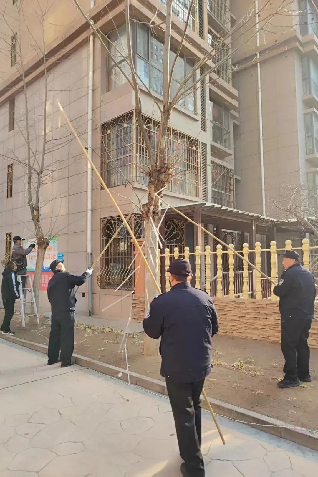 绿化师傅们精心呵护着小区的一草一木。他们在3月对草坪进行了修剪浇水、绿植移植补种,经过他们的努力,小区的绿植生机勃勃绿意盎然。