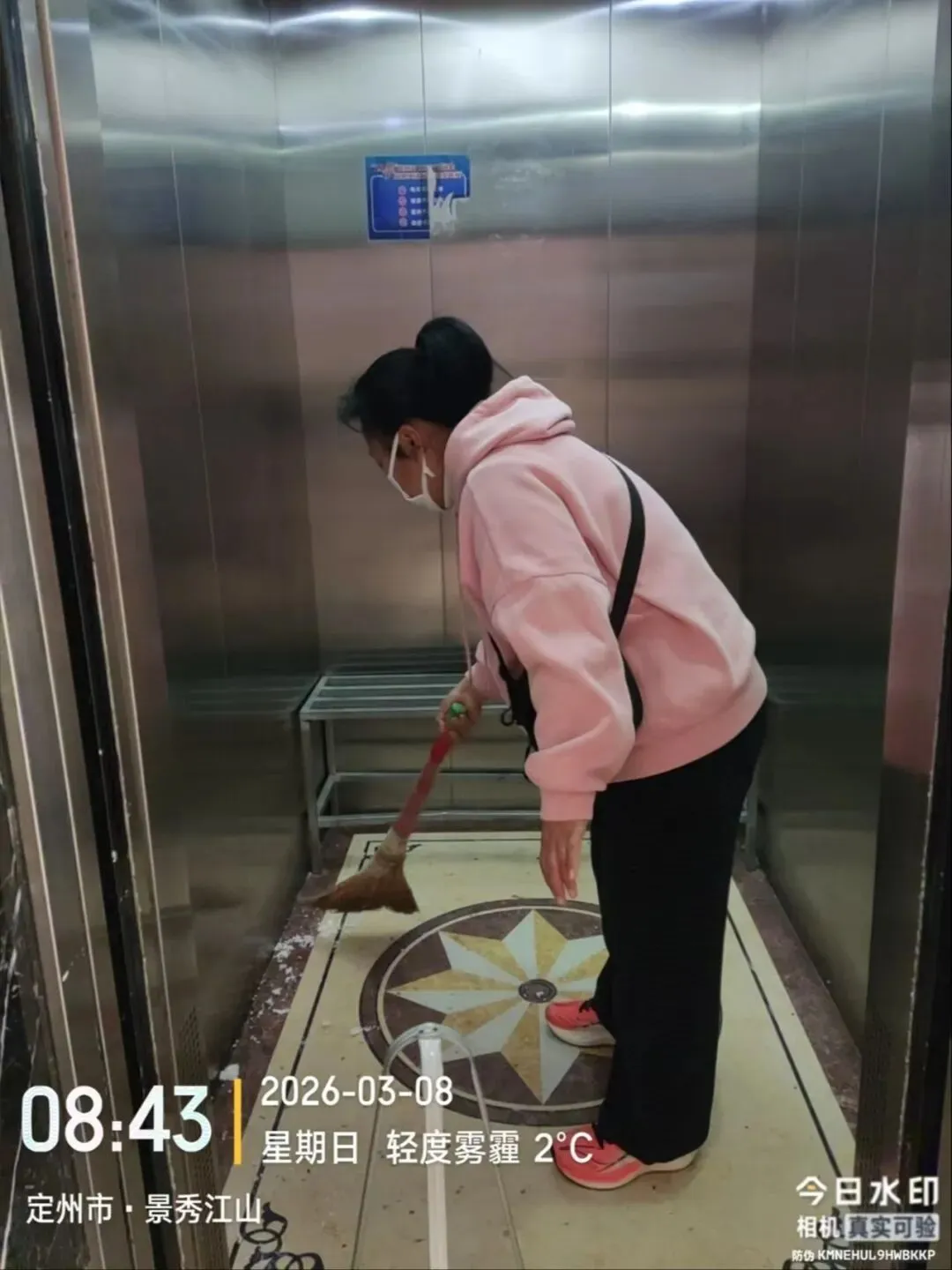 保洁团队每日不辞辛劳,为小区的整洁美观默默付出。清晨,当大多数业主还在睡梦中,他们已经开始了一天的工作,清扫小区道路、楼道,垃圾桶每日定时清洗、擦拭,楼道、电梯轿厢等区域的扶手、地面,都被擦拭得一尘不染。