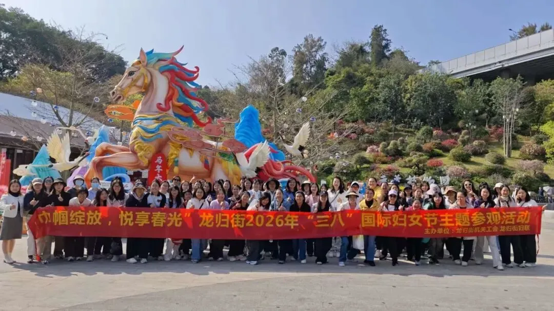 龙归街商会联合龙归街妇联、机关工会共同举办的“巾帼绽放 悦享春光”主题参观活动,龙归街妇联相关领导、街道女职工及龙归街商会女企业家代表滴滴旅行社江丽平、通达电气张萍、唯爱康体检周静东、真淳策划黄玲玲等逾100人参加活动,共庆第116个“三八”国际妇女节。此次主题活动,以花为媒、以绿为介,既是对国际妇女节的深情献礼,也是对新时代女性风采的生动展示。接下来,龙归街商会将继续发挥桥梁纽带作用,搭建更多交流平台,团结引领广大女性企业家和从业者,为区域经济社会高质量发展贡献“半边天”的智慧与力量。