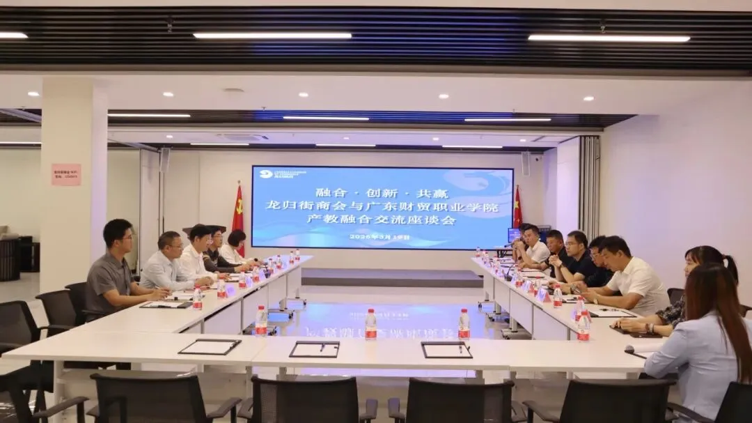 龙归街商会与广东财贸职业学院联合举办产教融合交流座谈会。广东财贸职业学院党委书记罗贤甲、副校长熊飞及相关部门负责人、龙归街道办事处主任章城焰、龙归街商会党支部书记徐国平及多家会员企业代表参会。会上,街道介绍了龙归街产业布局与发展规划;校方阐述了专业设置与人才培养情况。政、校、企三方围绕人才共育、基地共建等议题深入交流,在共建实习实训基地、开展订单式培养等方面达成初步共识。接下来,龙归街商会将继续发挥桥梁作用,精准对接校企需求,推动合作项目落地,为会员企业注入人才动能,助力区域经济高质量发展。