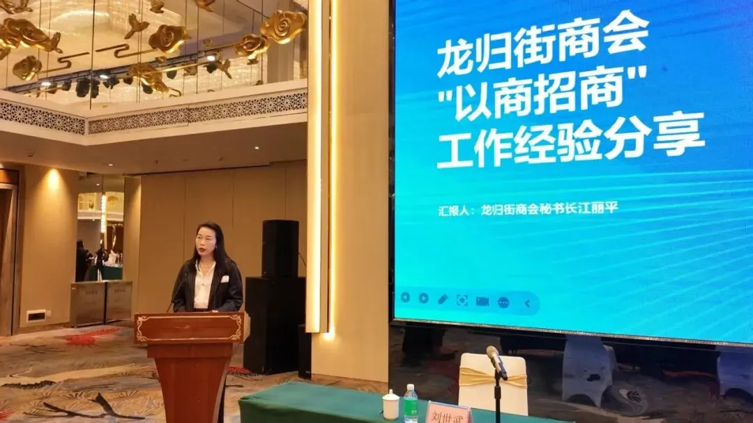 白云区工商联第十二届执行委员会第五次暨区总商会第一届理事会第四次会议在逸林假日酒店顺利召开。龙归街商会秘书长江丽平作为镇街商会代表之一参加了本次会议。会上传达学习了中央和省市区有关精神,审议了区工商联常委会及执委会相关事项,通报了重点工作,举行了颁牌仪式。在经验交流和宣传推介环节,龙归街商会秘书长江丽平分享了龙归街商会以商招商的经验,得到了区委常委、统战部部长、区政协党组副书记刘国华的肯定与表扬。会议还听取了区领导讲话,为下一步工作指明了方向。未来,龙归街商会将结合会议精神,贯彻落实会议要求,进一步规范商会建设,提升服务效能,助力辖区非公经济健康发展。