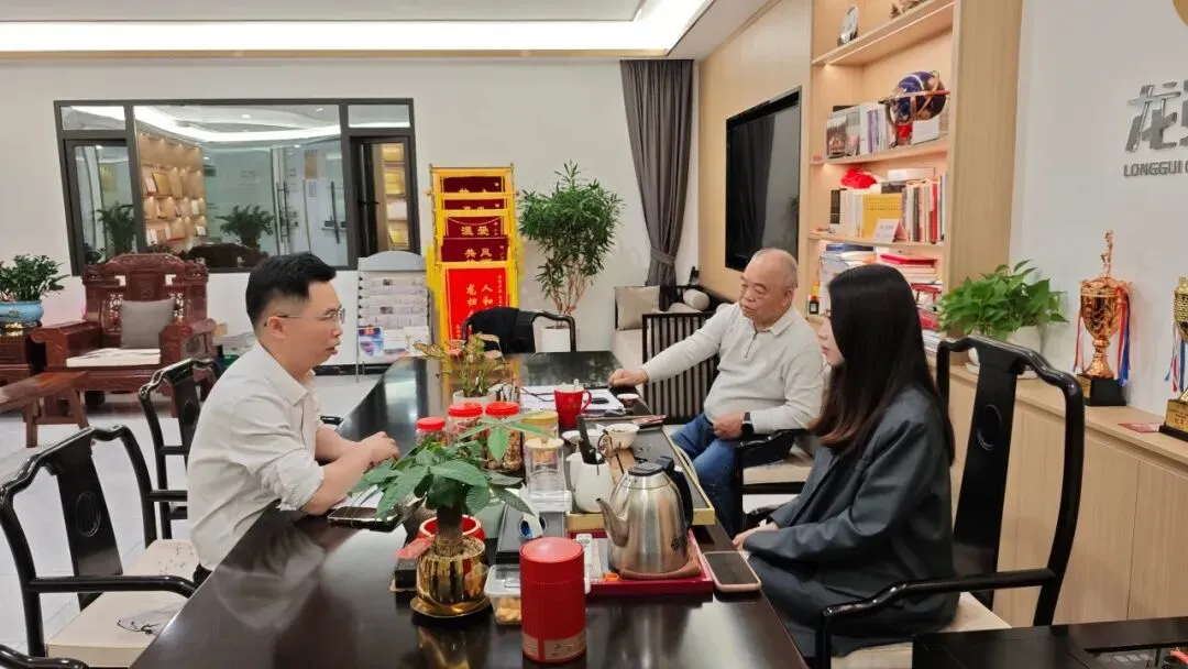 龙归街商会理事单位农商行龙归支行黄行长一行来访龙归企业服务中心,与商会党支部书记徐国平交流金融惠企政策,共同推动企业服务创新发展,为促进资源共享与协同发展奠定了良好基础。