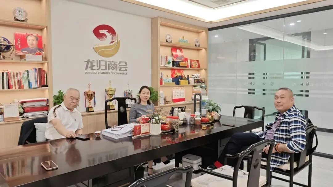 龙归街商会党支部书记徐国平、秘书长江丽平、副秘书长吴炜祺一行,到龙归街道办事处,向街道办副主任黄月霞汇报商会工作,听取领导指导意见,做好政策宣导工作,为区域经济高质量发展添砖加瓦。