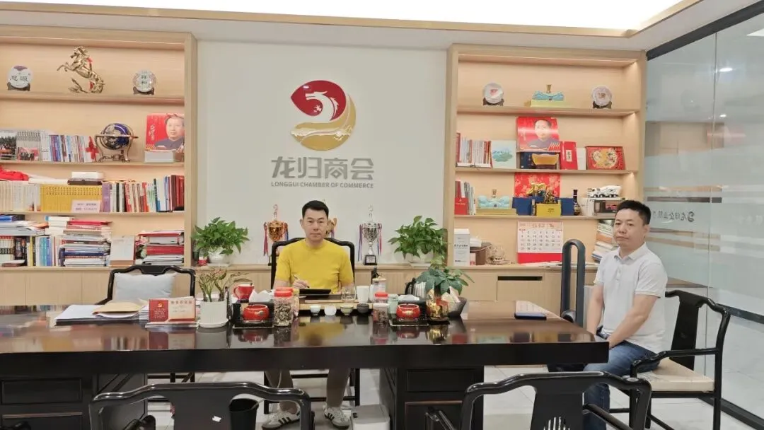 【广州展英建筑装饰工程有限公司】肖总到访龙归企业服务中心,与龙归街商会党支部书记徐国平进行座谈交流。徐国平书记详细了解了企业的运营情况与发展规划,并代表商会诚挚邀请肖总加入龙归街商会大家庭,携手共促发展。祝企业生意兴隆,财源广进!