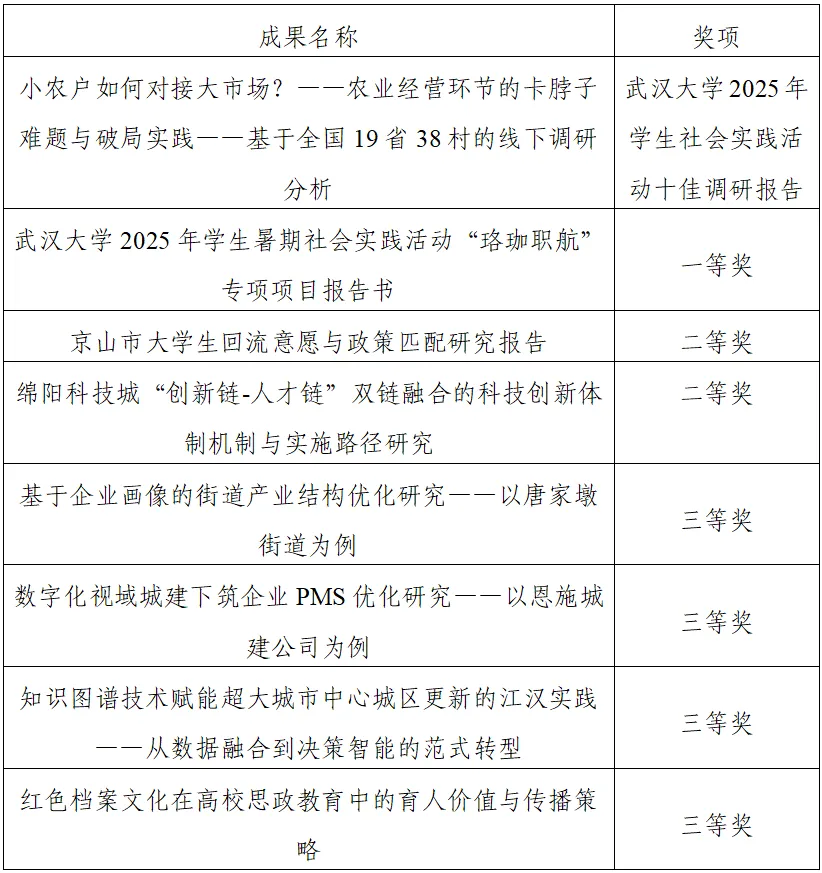 繁荣校园文体活动。自主举办文体活动13场,覆盖师生600余人次。组织我院学子参与校级文体赛事11项,成功获得武汉大学2025年“火炬杯”排球赛女排第四名;武汉大学2025年羽毛球学生赛阳光组混双十六强,高水平组男单第五名、女单第五名、混双第五名;武汉大学2025年“腾飞杯”篮球赛女篮亚军;武汉大学2025年研究生十佳歌手;武汉大学第十二届研究生集体舞大赛冠军;武汉大学2025年研究生篮球赛女篮第五名;武汉大学2025年研究生羽毛球赛男双第五名等重要校级荣誉。
