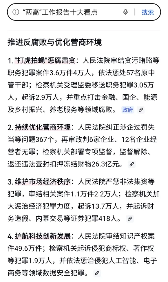 2026年两高工作报告发布,其中推进反腐败与优化营商环境成为核心看点之一,报告释放关键信号:对各类破坏市场经济秩序犯罪坚持依法从严惩治,同时对依法合规经营的企业给予精准司法保护。着力营造市场化、法治化、国际化一流营商环境。
