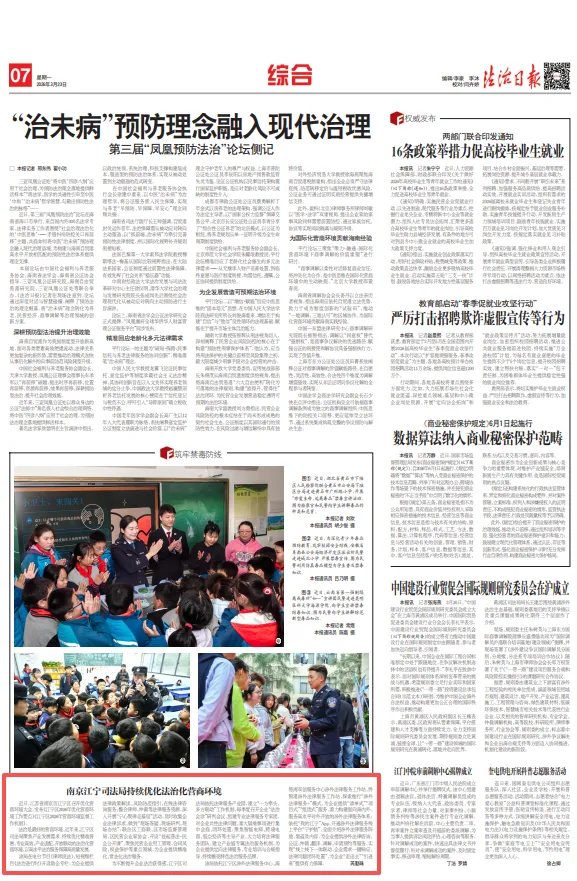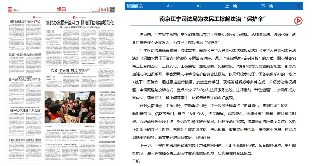 3月31日,南京市政协社法(民宗)委主任陆蓉带队调研我区涉外法律服务工作。区政协党组成员、副主席姚燕玲,区司法局易蓉蓉局长等陪同调研,区商务局、江宁开发区及相关企业代表受邀参加座谈。调研组首先参观了江宁区公共法律服务中心,观看了江宁区涉外法律服务宣传片。之后,召开专题座谈会。区司法局、区商务局、江宁开发区分别就涉外法治建设、知识产权配套保障、园区涉外法律服务等进行了汇报。苏博特、埃斯顿、南自自动化、钜力工程(南京)、寒锐钴业、中材国际等6家重点企业结合涉外经营实际,交流涉外法律服务存在的难题和堵点,梳理跨境合规、纠纷化解、涉外法律人才保障等难点问题,并提出务实建议。陆蓉主任对江宁涉外法律服务工作成效予以肯定,并强调:一是强化学习意识,提升涉外法治服务能力;二是整合优势资源,增强涉外服务供给效能;三是推行跟随式服务,全程护航企业“走出去”;四是发挥企业主体作用,推动实践经验互学互鉴;五是健全工作机制,夯实涉外服务制度保障。