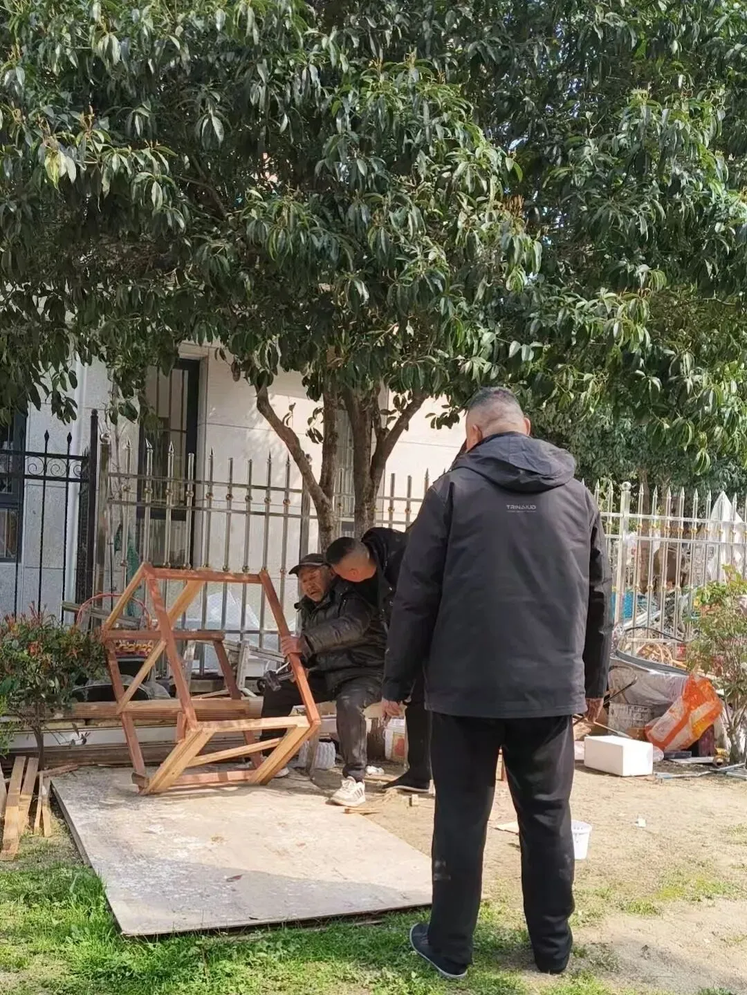 休息平台木板维修现场照片