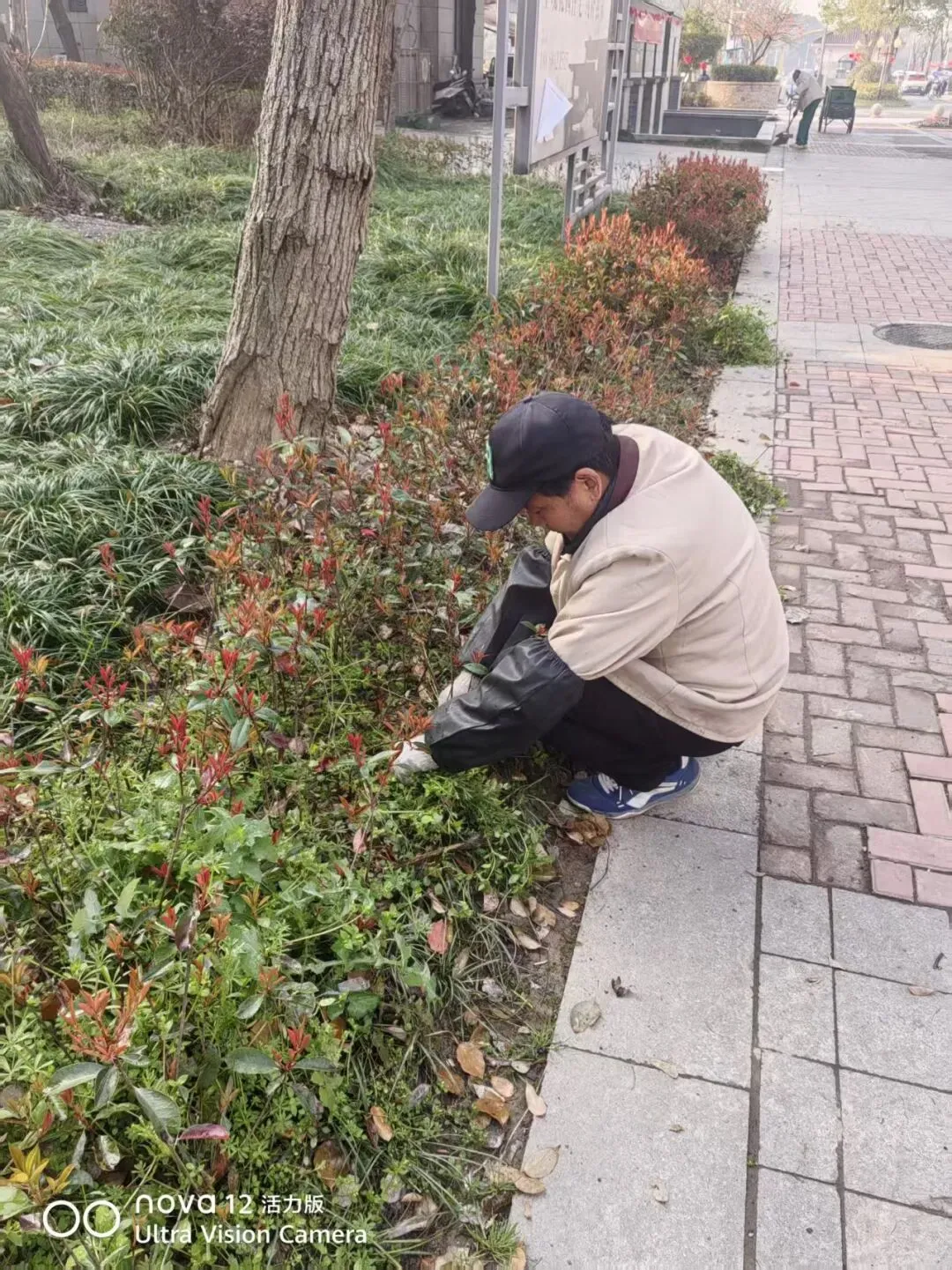 2、园区草地枯叶清理,部分乔木修剪;
