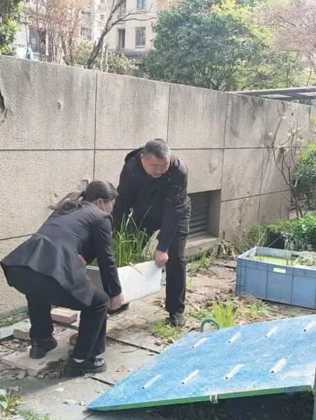 联合城管部门对园区毁绿种菜的区域进行清理,清理完成后对其进行补种适应气候的灌木或植物,让绿化带成为居民共享的绿色休憩空间。