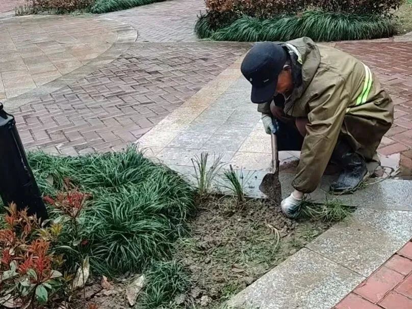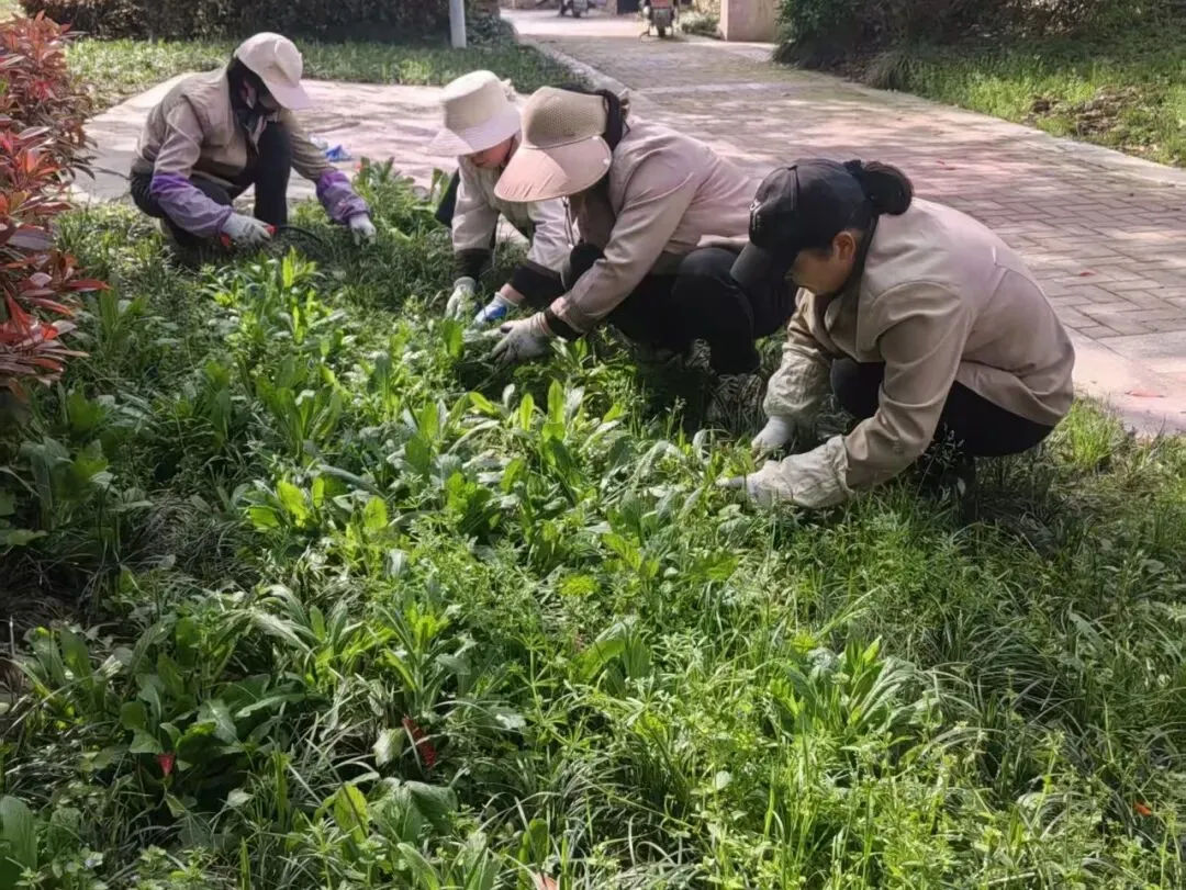 全员出动清理绿化杂草,一起告别杂草丛生,打造美丽环境,美化家园,提升业主的居住品质。
