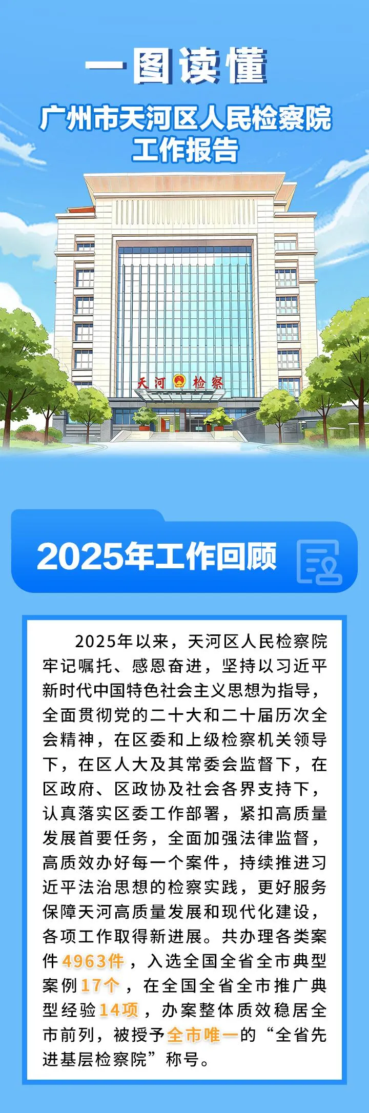 攻坚克难显担当,凝心聚力开新局。回首2025年,天河检察各项工作取得了哪些新成就?展望2026年,天河检察又将如何前行?带大家一图读懂!