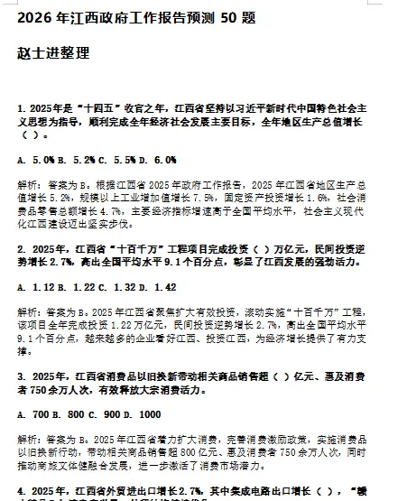 >2026江西三支一扶:江西政府工作报告50题含解析