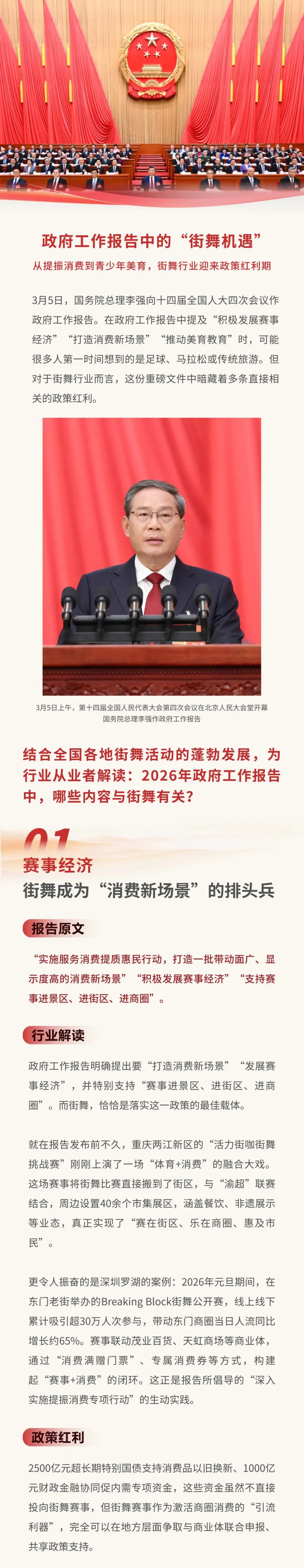 政府工作报告中的“街舞机遇”:从提振消费到青少年美育,街舞行业迎来政策红利期