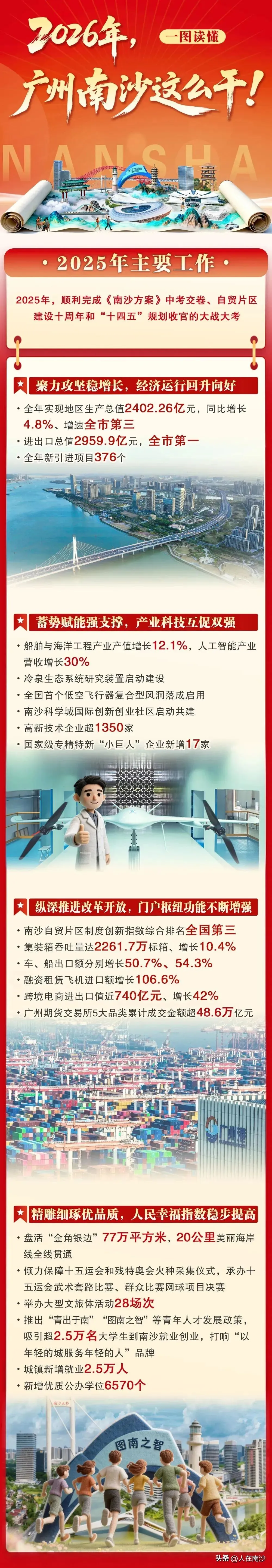 2.打造新质生产力孵化地:启动新能源器件循环利用能力提升项目建设、高新技术企业总数达1500家、吸引3万名以上高校毕业生到南沙就业创业