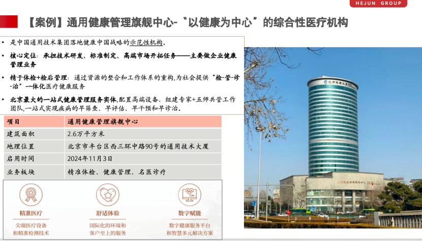 作为央企打造的标杆项目,通用健康管理旗舰中心正是主动健康理念的典型实践,该中心是中国通用技术集团落地健康中国战略的示范性机构,定位为“以健康为中心”的综合性医疗机构,聚焦企业健康管理业务,打造“检—管—诊—治”一体化服务体系。中心建筑面积达2.6万平方米,是北京规模最大的一站式健康管理服务实体,配备高端医疗设备与专家团队,推行“专家+五师共管”模式,实现疾病早筛查、早评估、早干预、早诊治,充分体现了从被动诊疗到主动健康管理的行业转型方向。