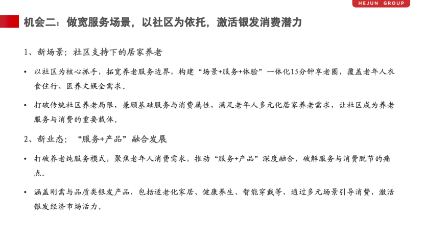 第二个战略机会是做宽服务场景,依托社区激活银发消费潜力。社区是老年人生活的核心场景,也是银发消费的重要载体,以社区为依托拓宽服务场景,成为激活银发消费的关键抓手。