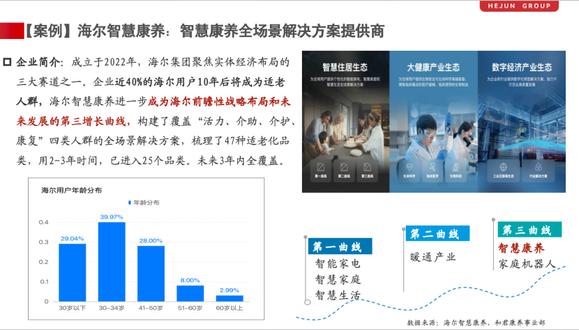 海尔智慧康养作为海尔集团前瞻布局银发经济的核心战略板块与集团第三增长曲线,自2022年成立以来持续深耕智慧康养领域,依托集团在智能制造、物联网与家庭场景生态上的深厚积累,构建起以“1+5+N”为核心的全场景解决方案,以1个智慧康养云平台为中枢,覆盖健康监测、智能卫浴、舒适睡眠、安全出行、专业康复五大老年高频刚需场景,联动智能护理床、监测床垫、助行移位设备、AI康复机器人、适老化家电等数十类智能终端,精准匹配活力长者、介助、介护、康复四类人群的差异化需求,同时落地“3790”养老体系,以城市康养综合体为核心、社区站点为支撑、居家场景为主体,形成机构、社区、居家三位一体的联动闭环,不仅推出外骨骼机器人、智能二便护理、AI健康监测等高精尖产品,更通过场景化、一体化、主动式服务破解传统养老“不会用、没人管、不连贯”的痛点,将工业制造能力、物联网技术、家庭服务经验全面转化为银发产业的新质生产力,为养老机构、社区服务中心与居家老人提供可落地、可复制、可规模化的科技康养样板,成为科技赋能银发经济、驱动产业升级的标杆范例。