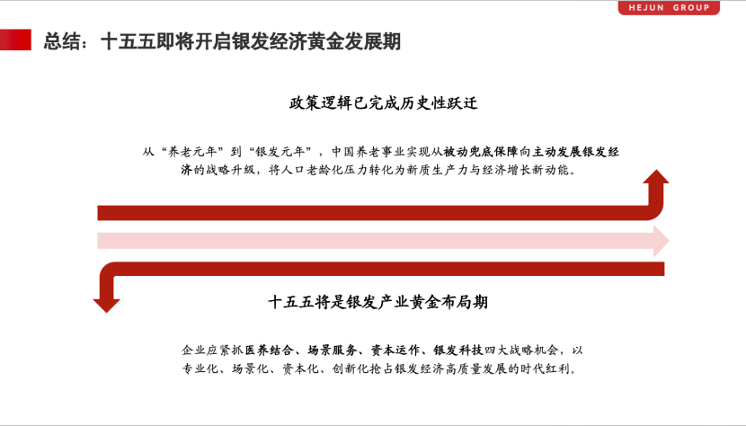从产业层面看,“十五五”时期将是银发产业的黄金布局期,医养结合、场景服务、资本运作、银发科技四大战略机会清晰明确,为各类市场主体提供了广阔的发展空间。