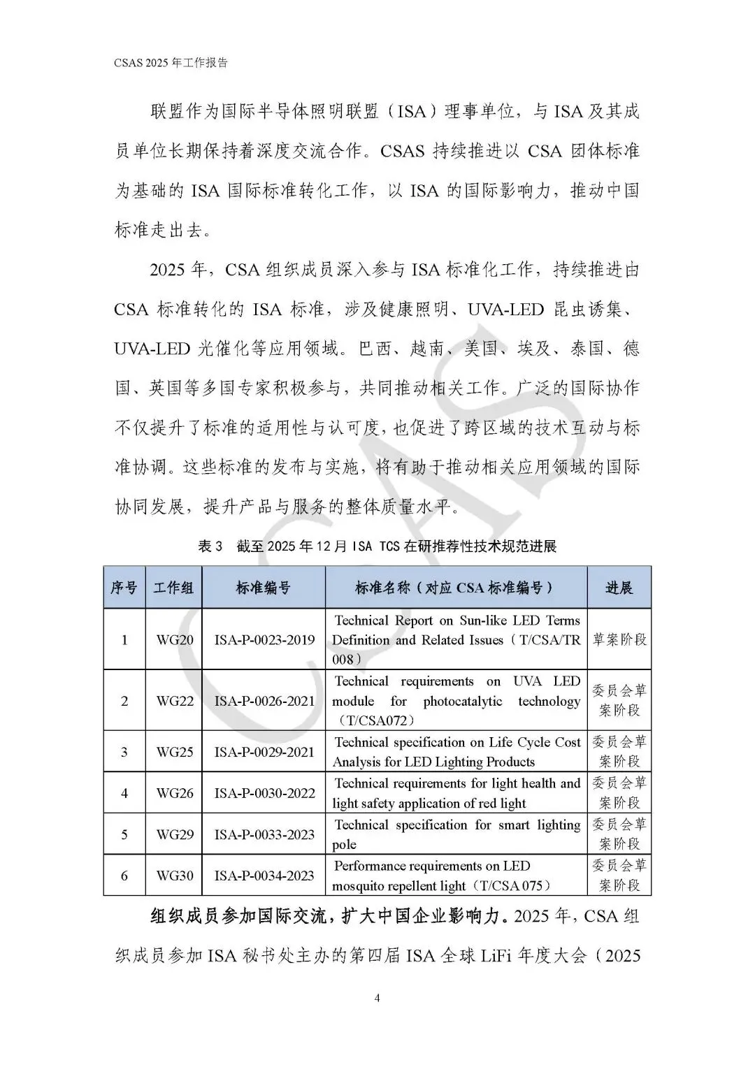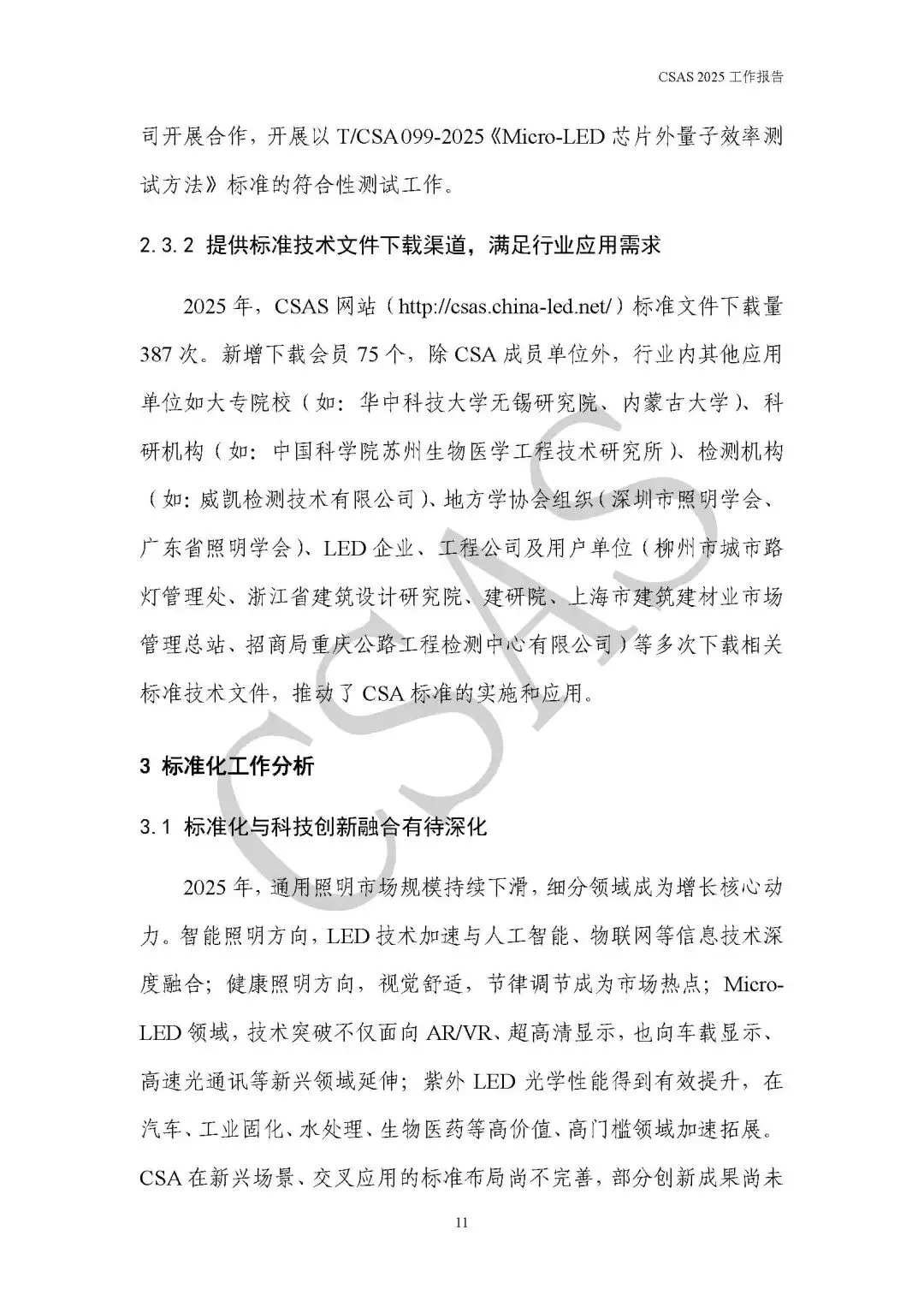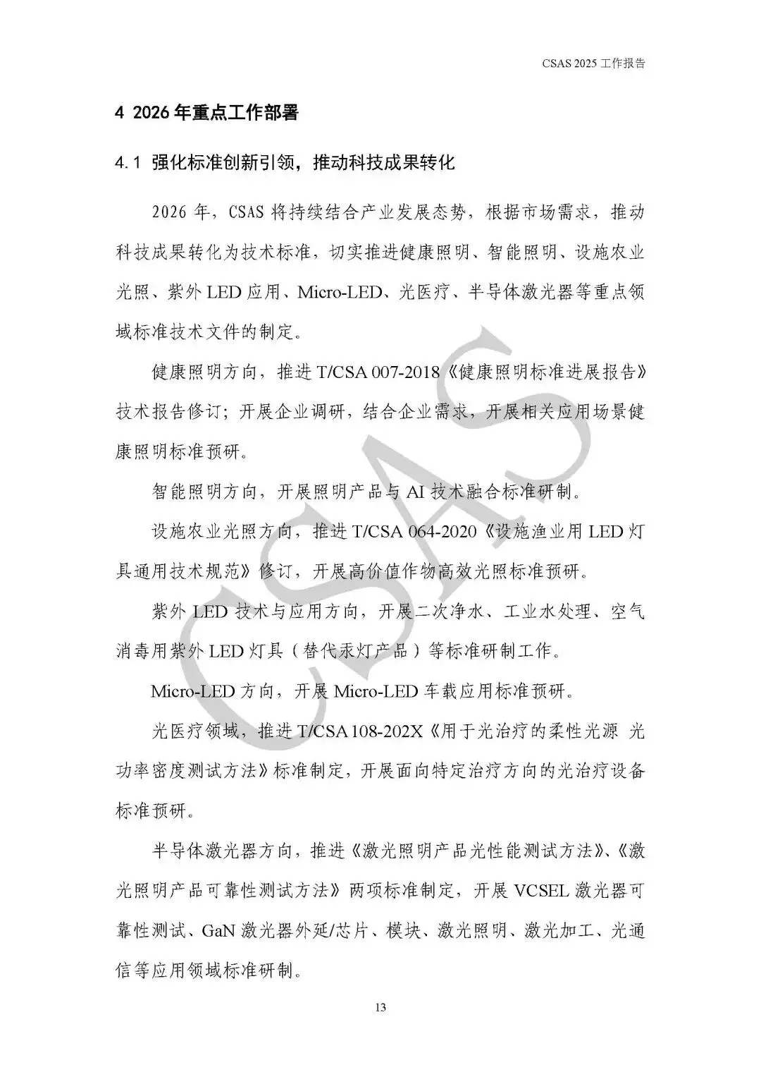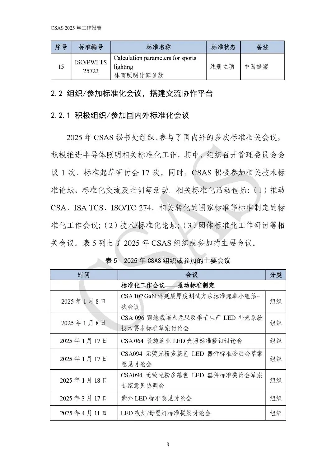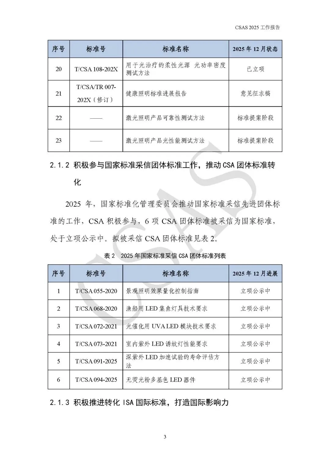 中关村半导体照明工程研发及产业联盟 标准化委员会(CSAS)发布2025年工作报告。报告全面总结了一年来联盟在团体标准、国家标准、国际标准等方面的工作进展及成果,并明确2026年深化标准化工作的重点方向。