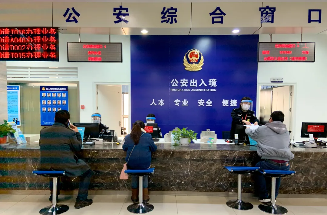 ∆群众在出入境办证大厅快捷办理业务