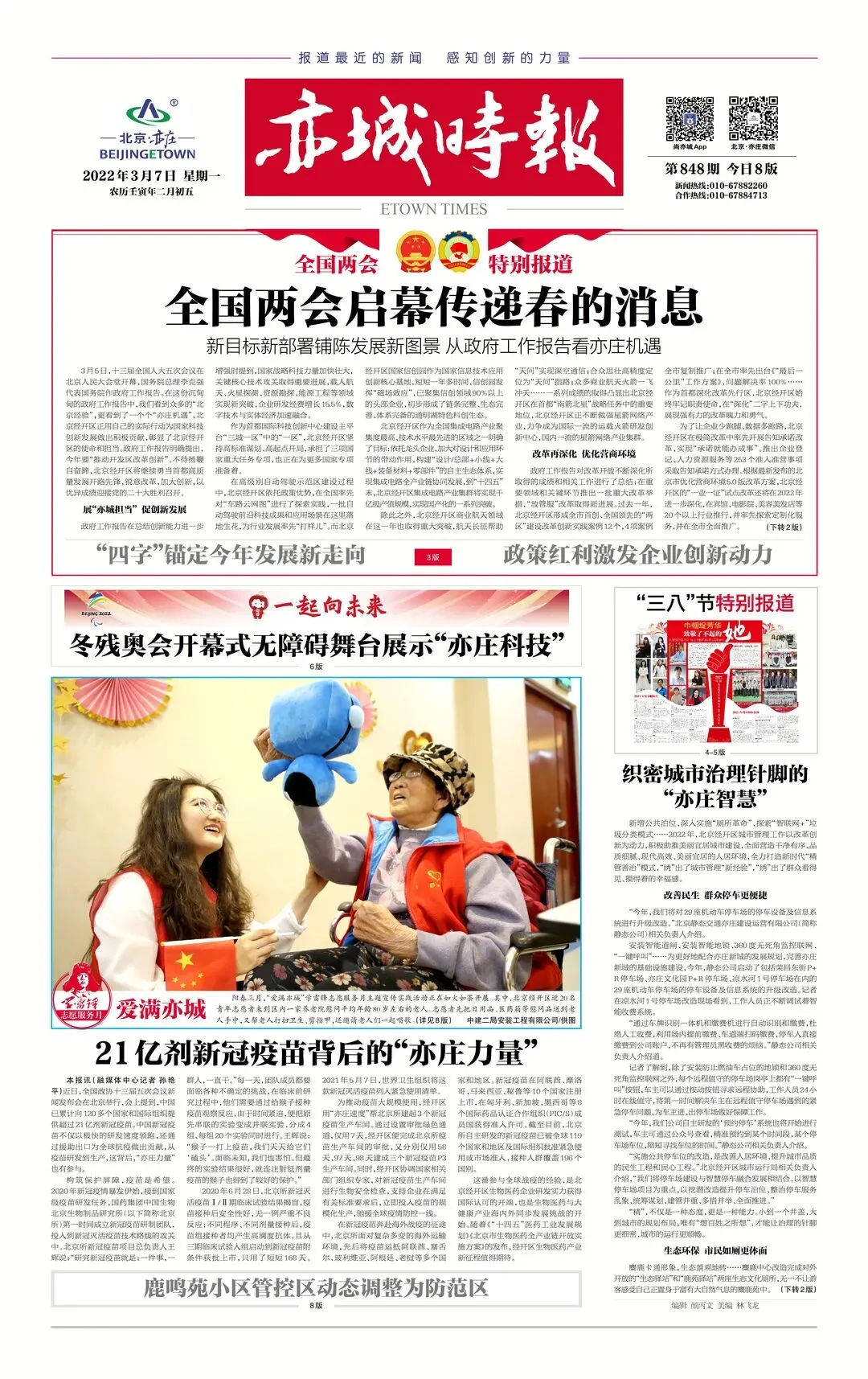 新目标新部署铺陈发展新图景,从政府工作报告看亦庄机遇;21亿剂新冠疫苗背后的“亦庄力量”;织密城市治理针脚的“亦庄智慧”;冬残奥服务保障有力度更有温度;从政府工作报告看今年发展新走向;巾帼绽芳华,致敬了不起的她;开幕式无障碍舞台绽放“亦庄智慧”;“关银一KEY通”助力北京经开区外贸跑出加速度;北京经开区鹿鸣苑小区“解控不解防”……一起来看看本期的《亦城时报》吧~